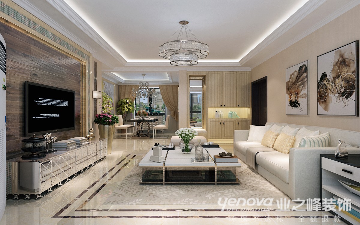 本方案定位于现代简约风格,整体的体现了现代风格的大气,整体色调采用了暖色调,电视背景墙是石材镜框线和木地板上墙,体现了现代的时尚,餐厅背景墙同样使用了石材镜框线现代的壁画相结合,整体的设计风格体现了现代风格的时尚、简约气息。