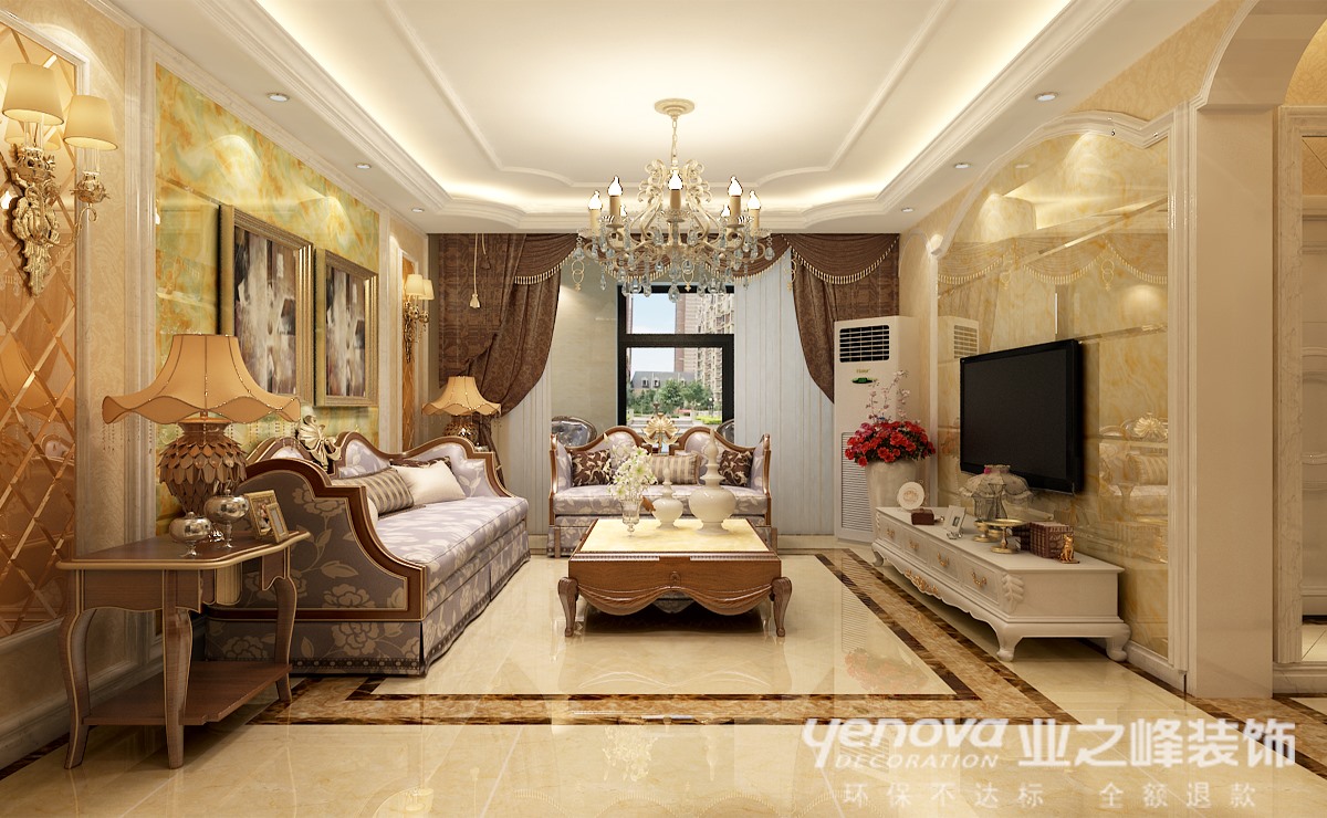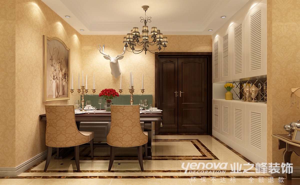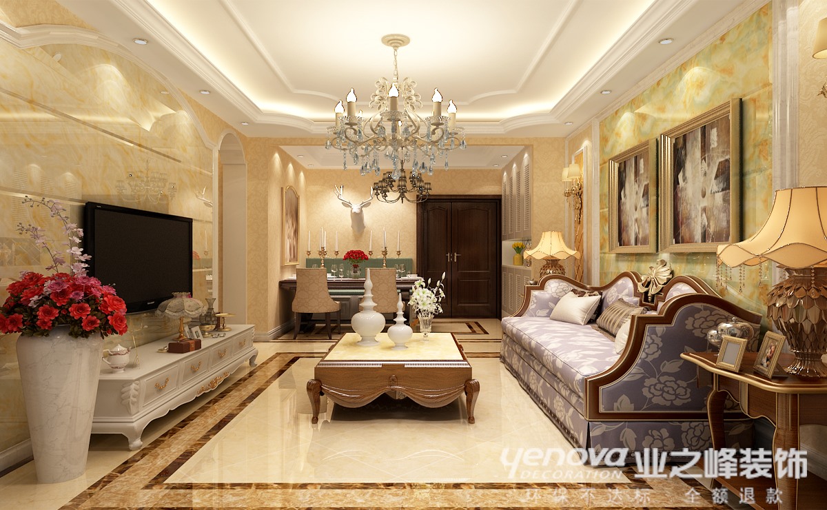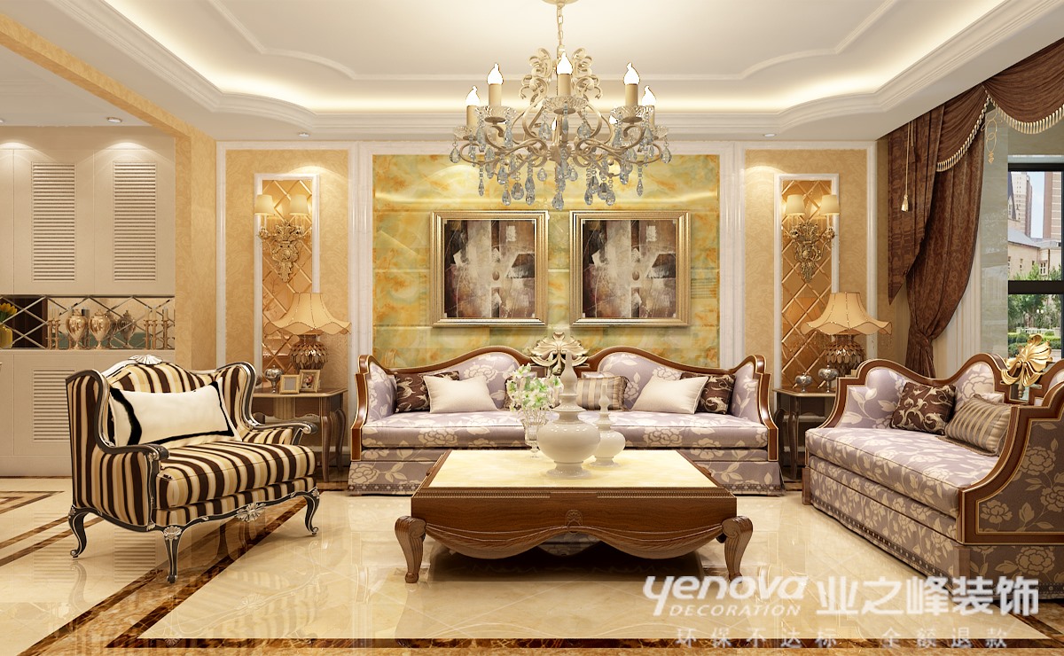本方案定位于欧式风格,设计师通过认真仔细的思考,来满足业主的需求,客餐厅的明确区分,使其具有一个独立的空间,客厅电视背景墙和沙发墙的相互对应,电视背景墙的与进入走廊的弧形垭口的造型一致,形成对称,沙发背景墙采用了石材上墙,不仅显得大气而且更加的时尚;在设计手法上是考虑先整体后局部。