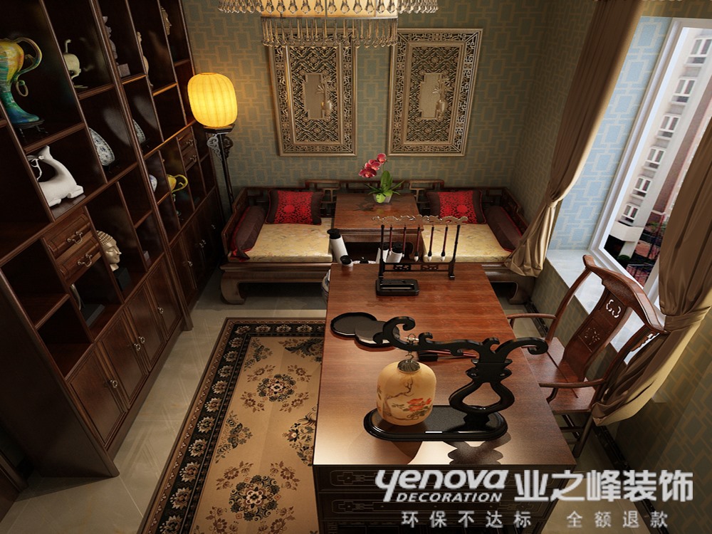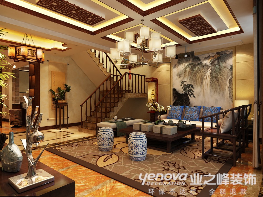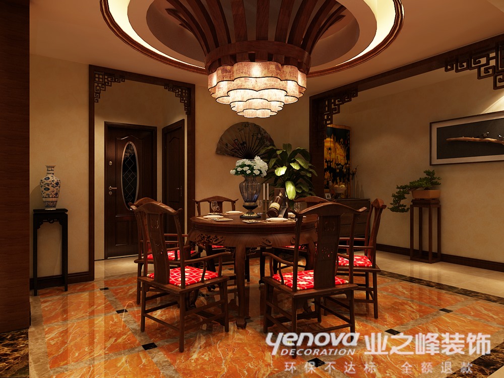 本方案定位于中式风格,整体融入了中式的元素,原始户型经过设计师的细心斟酌的拆改,使整个空间的到了最大的合理运用化,吊顶方面区分了每个空间,同样每个空间的吊顶既有区别也有一定的联系,电视背景墙使用了石材上墙,体现了中国崇尚原始之情,中式的水墨壁画和花格的使用更是继承了中国的传统,电视墙和沙发墙的设计交相呼应,简单大气,整体的色调采用了暖色调,家具的颜色是传统的红木色,并且根据客户的需求设计了每个卧室。设计手法上考虑,体现了先整体后局部的设计手法。