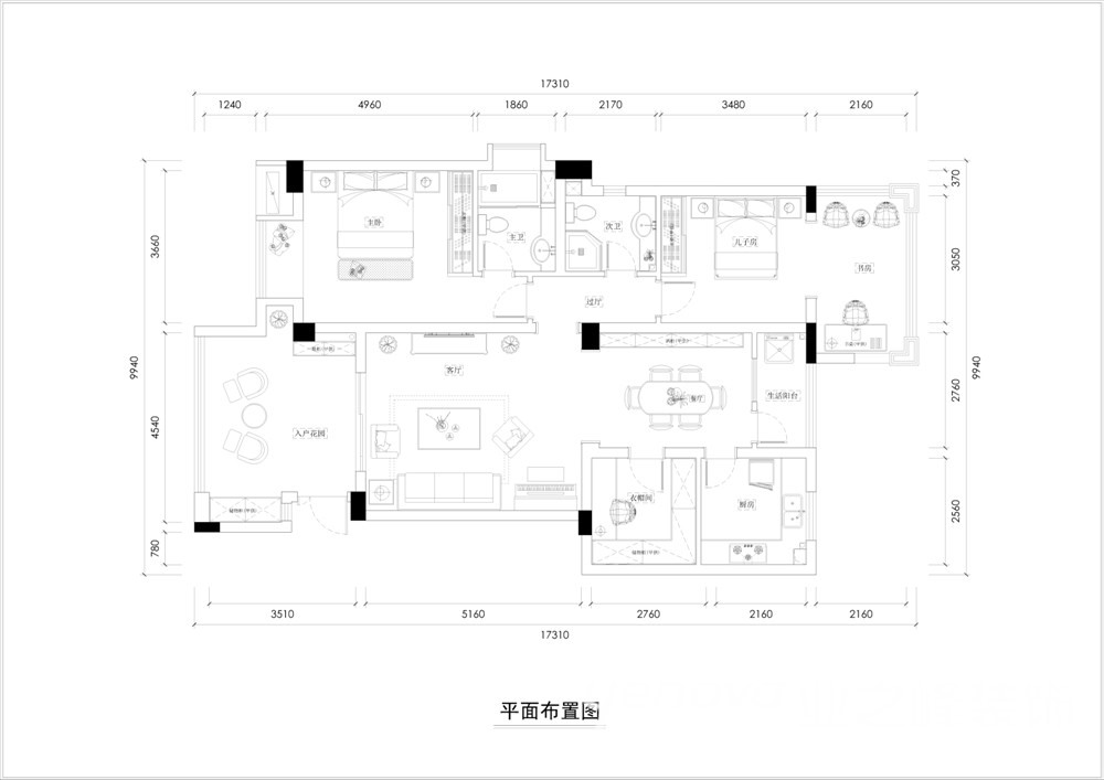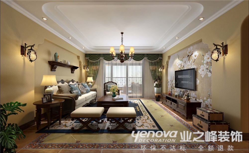 小区:艺锦湾 面积:100㎡ 户型:三居 风格:美式风格