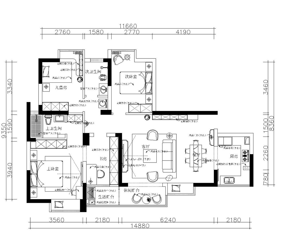 小区:宏达世纪城 面积:123㎡ 户型:三居 风格:简欧风格