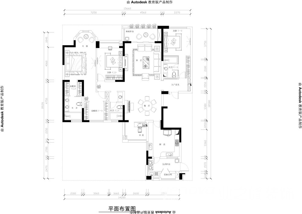 小区:中海金沙府 面积:195㎡ 户型:四居 风格:混搭风格