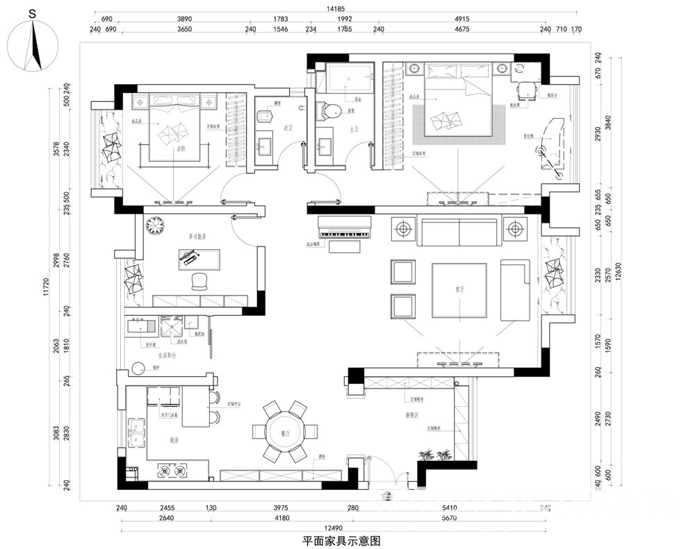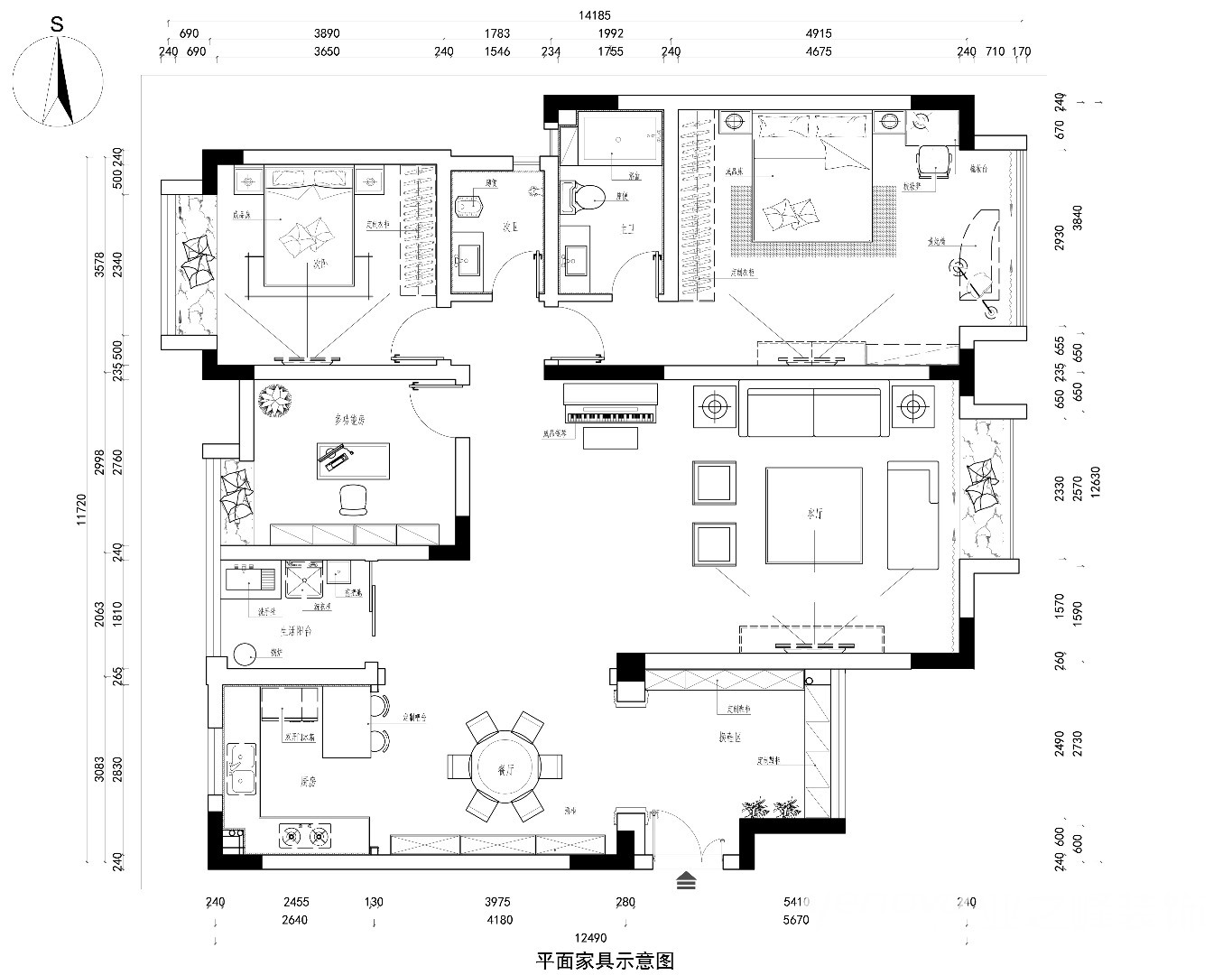 小区:龙湖三千里 面积:130㎡ 户型:三居 风格:美式风格