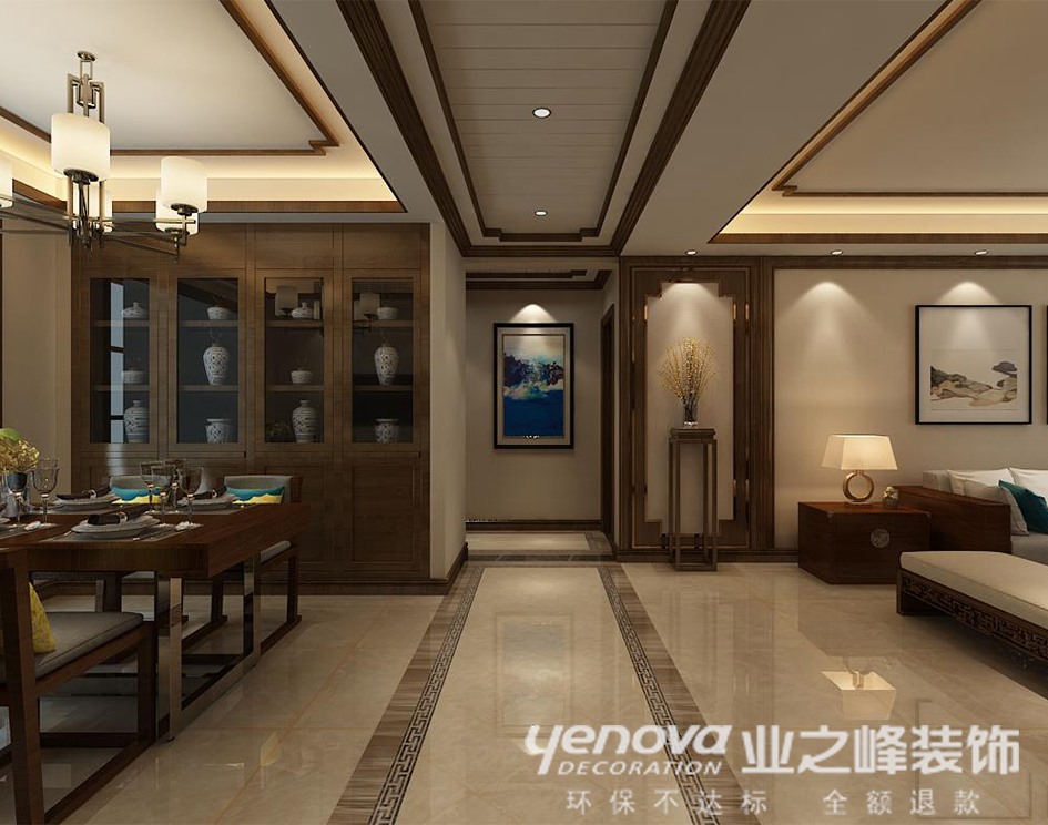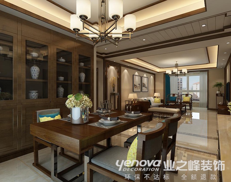 小区:东胜紫御府 面积:160㎡ 户型:三居 风格:新中式风格