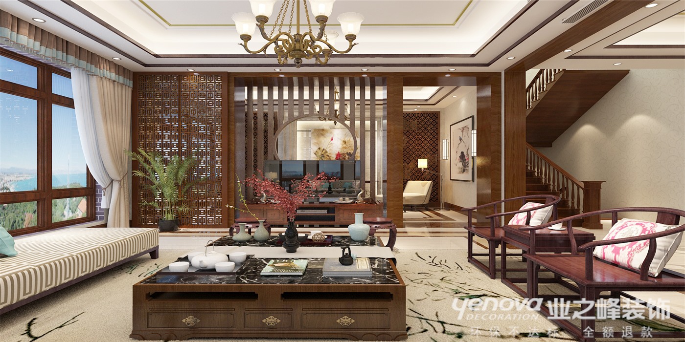 小区:金城一号 面积:386㎡ 户型:复式 风格:新中式风格