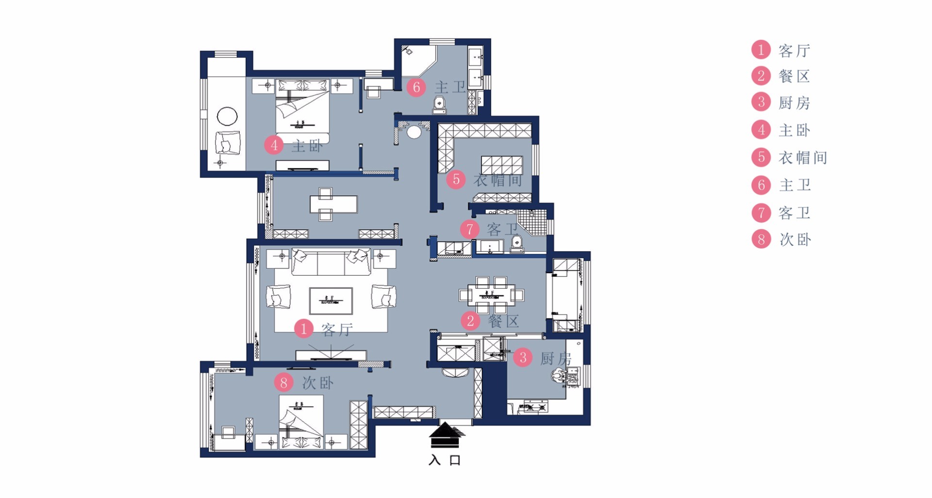 小区:南郡香醍雅诺 面积:128㎡ 户型:四居 风格:美式风格