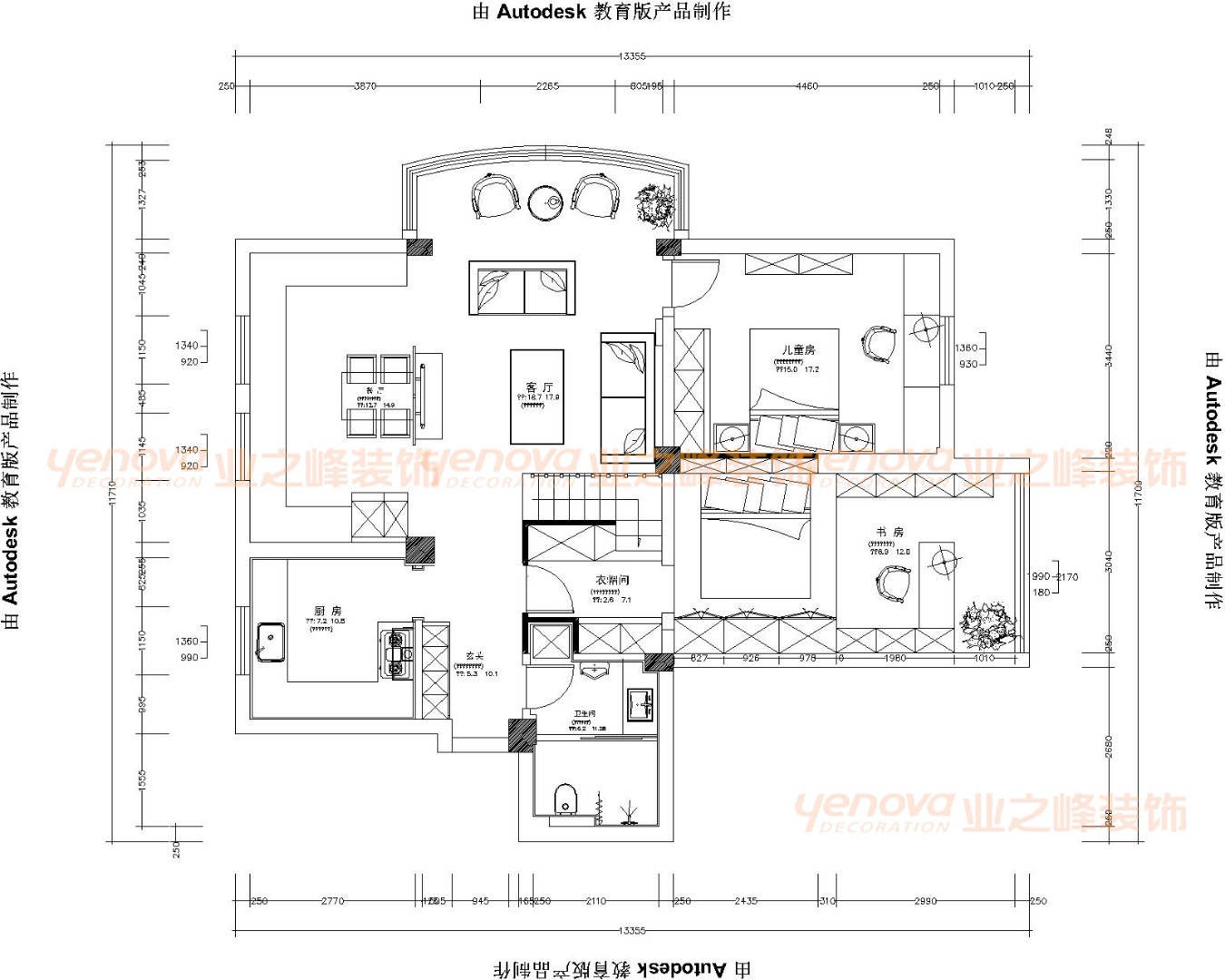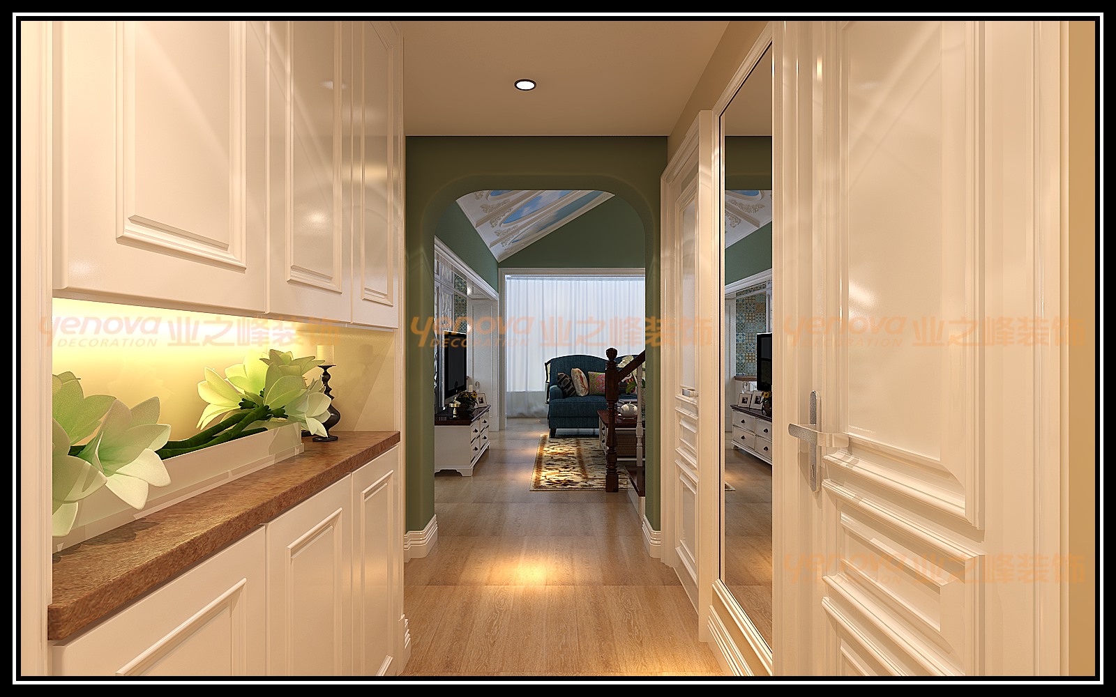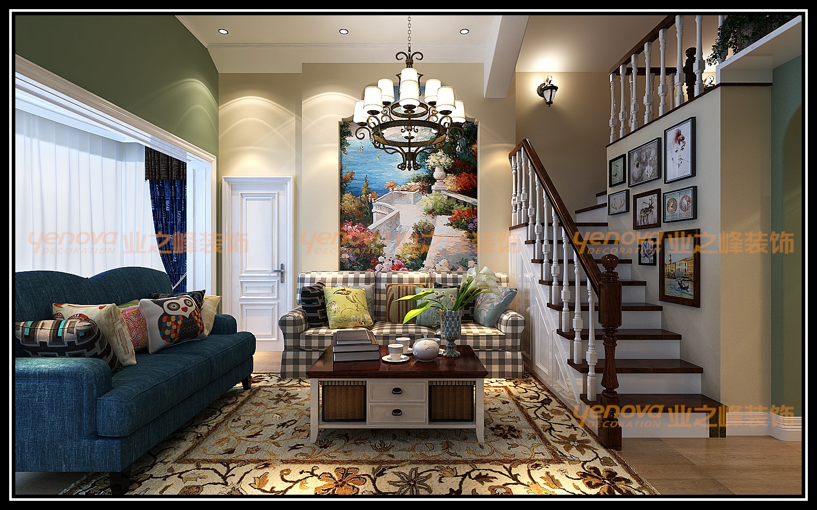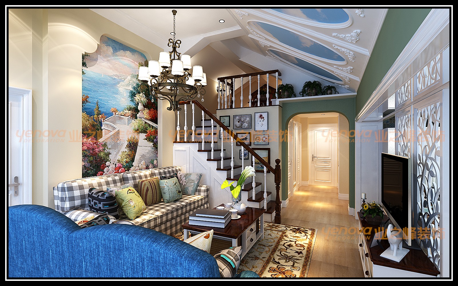一提起美式田园的风格大家立刻就会想到碎花、原木、绿植……。设计师在本案中打破了以往的元素,但任然营造出田园的那份休闲与惬意。另外设计师对斜面屋顶的处理增加了新意,保留了美式的石膏线的造型与蓝天白云的壁纸的结合营造出一种别有洞天的效果,犹如房顶开了天窗一样。在材料的运用上设计师运用了纯色的墙面衬托白色的木作,沙发背景应用了造型与手绘画相结合,在空间上有一种别有洞天的营造感。在结构上由于客户的职业需要一个独立的看书空间,于是在二层的有限空间内除了保留了储物空间外又增加了一个读书休闲厅。