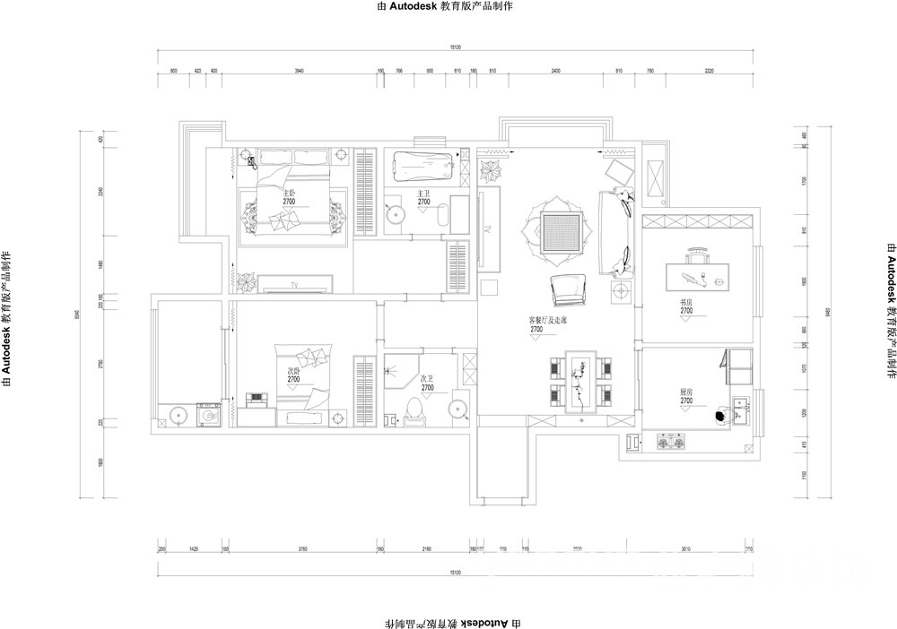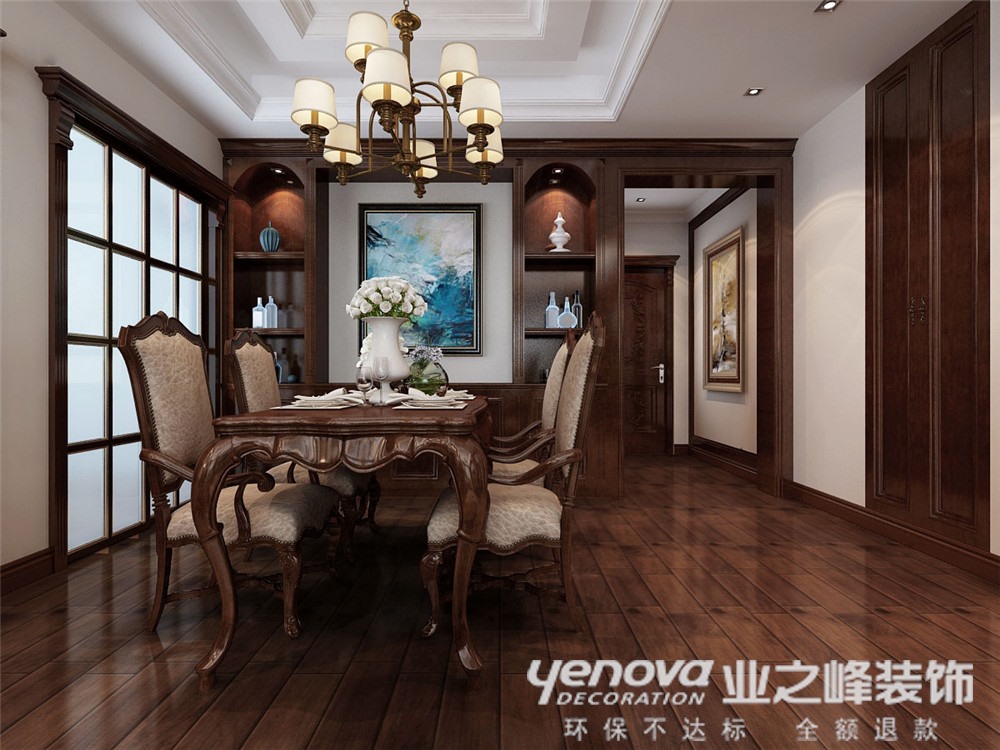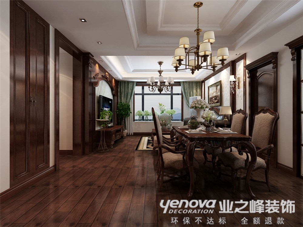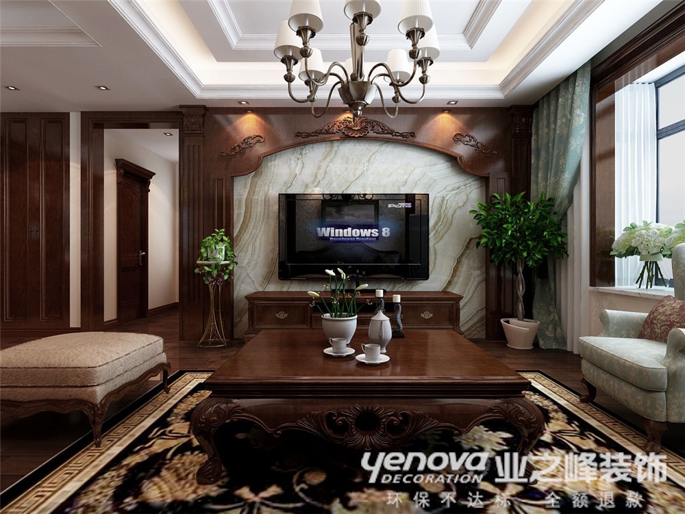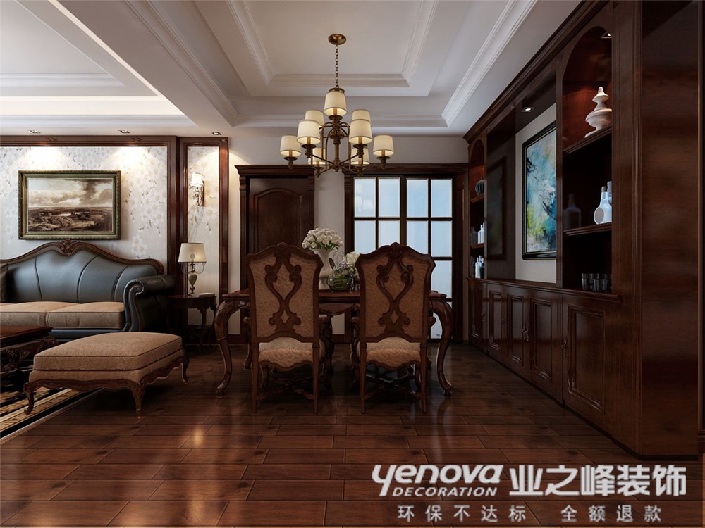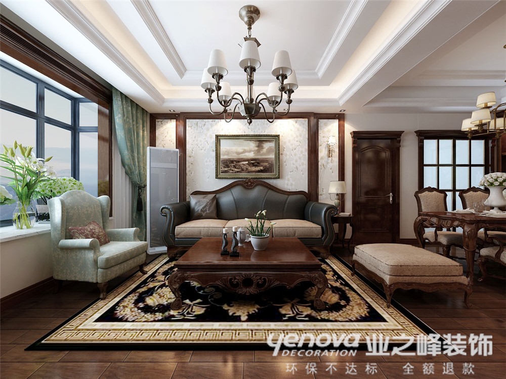 客厅风格较多采用嵌入式石膏吊顶,搭配精致的铁艺美式吊顶,营造出一种怀旧、浪漫的感觉。以大理石作为地面装饰材料,光泽感极佳,在沙发区铺上大幅花纹地毯,使空间区域划分更加清晰。复古造型的组合沙发,以及茶几都具有上乘的质感,让美式古典风格得以进一步的彰显。窗帘采用双层设计,一层为奢华的提花布,另一层则为轻薄的纱帘,兼顾了保护隐私与透光性。卧室以功能性和实用舒适度为主要设计理念。采用非炫目式灯光,显得温馨舒适。在饰品布置上,大多都是用成套的布艺来装饰房间