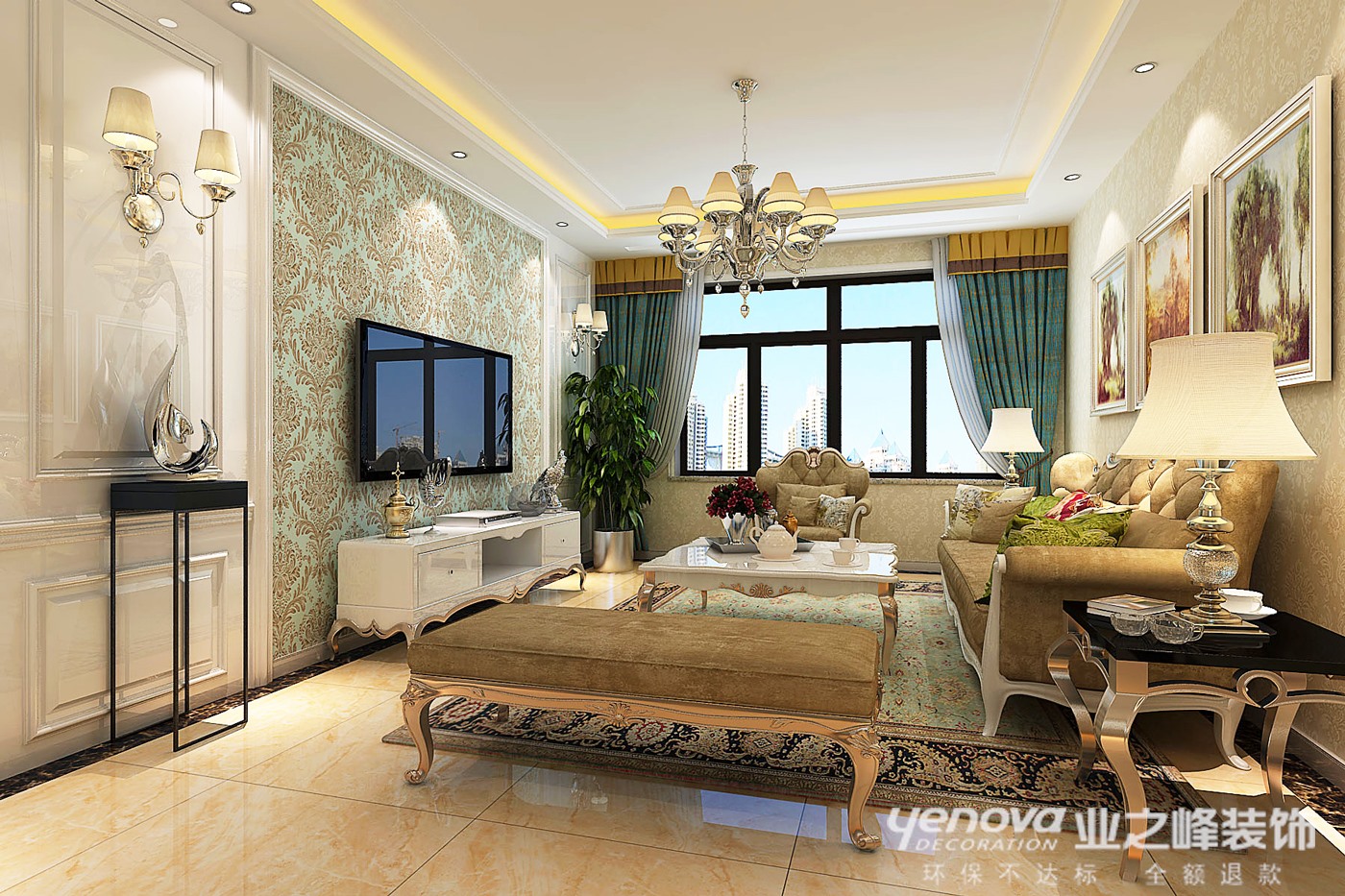 135㎡三居简欧风格中凯龙城