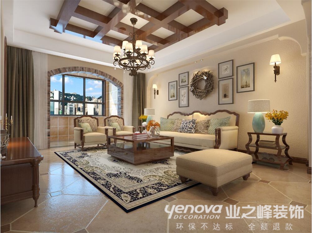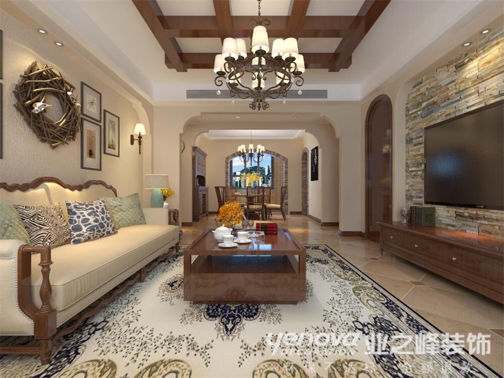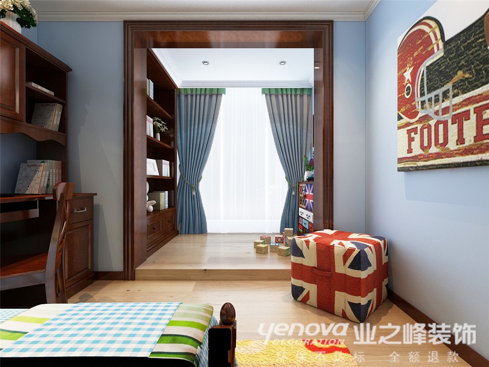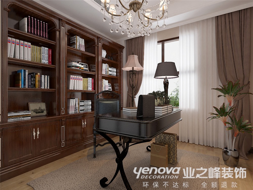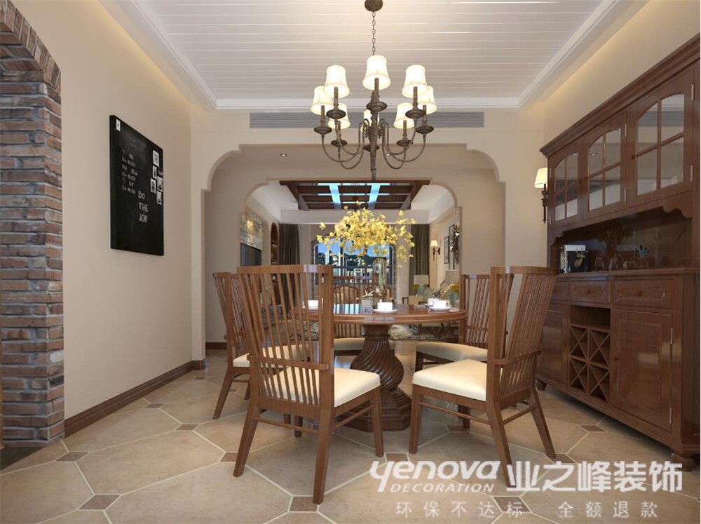 业主为年轻有为的夫妇,设计重点是会客空间与门厅、餐厅以及过道空间互通与交流,客厅作为待客区域,客户要求简洁明快,同时装修较其它空间要更明快光鲜,使用大量的仿古石材和木饰面装饰。走廊及过道都是做了美式的拱形造型,加上客厅木制九宫格的吊顶,使客餐厅更加宽敞而富有历史气息。书房简单实用,但软装颇为丰富,各种象征主人过去生活经历的陈设一应俱全,被翻卷边的古旧书籍、颜色发黄的航海地图、乡村风景的油画、一支鹅毛笔……即使是装饰品,这些东西也足以为书房的美式风格加分。因为男女主人都比较喜欢在书房休息,所以书房的窗帘是比较深的褐色,拉开时能享受阳光,拉上时能沉浸在一个静谧的时光。卧室布置较为温馨,作为主人的私密空间,主要以功能性和实用舒适为考虑的重点,多用温馨柔软的成套布艺来装点,同时在软装和用色上非常统一。