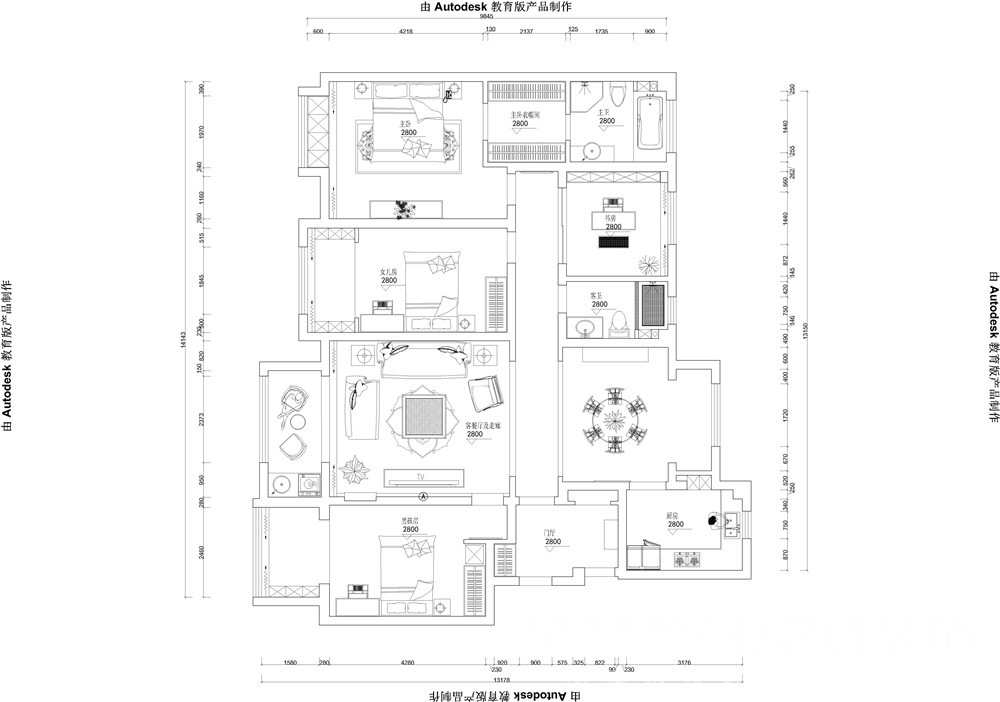 小区:中海B2花园洋房 面积:170㎡ 户型:四居 风格:美式风格