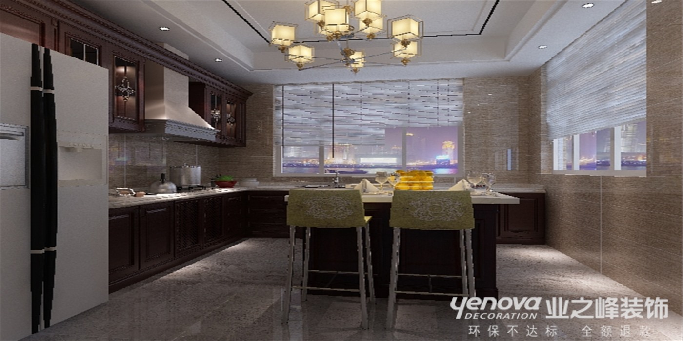 因为厨房面积比较大,所以一楼厨房的设计了岛台,想象在匆忙的早晨,一个人的简单早餐,很少有人会正是坐下了品尝早餐的美味,此时厨房岛台就可以作为临时餐厅使用,方便快捷,简单实用。只需要餐椅既能够将厨房岛台作为临时餐厅,休闲的同时可以随时添加食物。厨房侧面设计了吧台,此时的厨房岛台可以当做开设一场欢乐的聚会的临时吧台,既美观又富有情调。