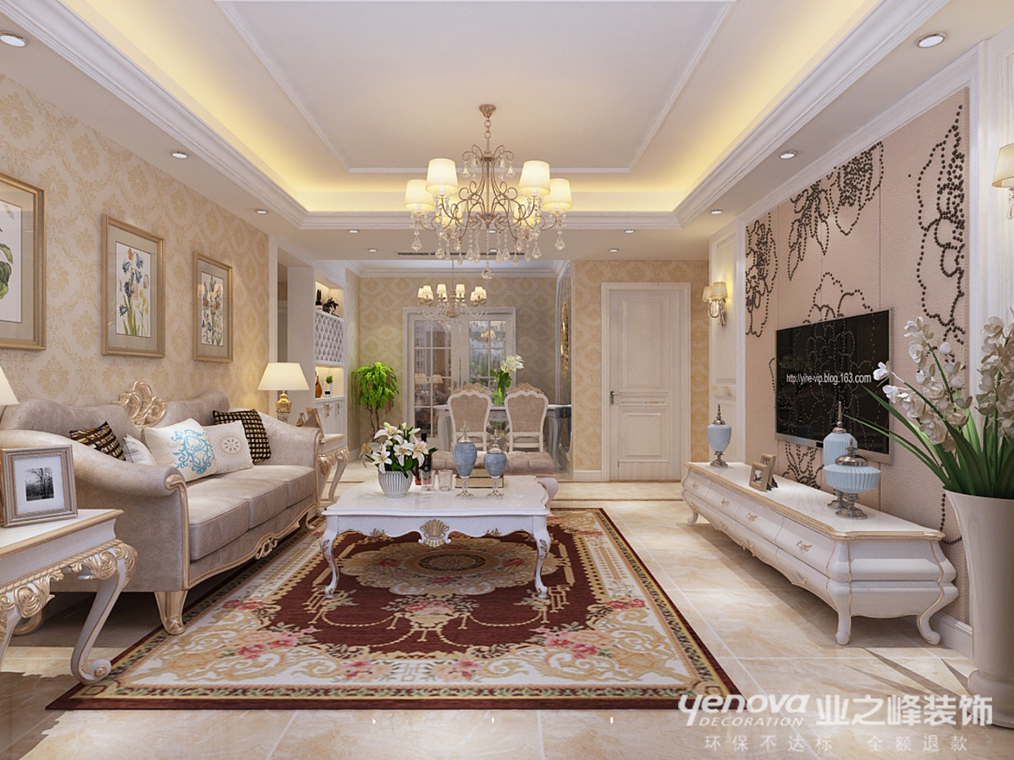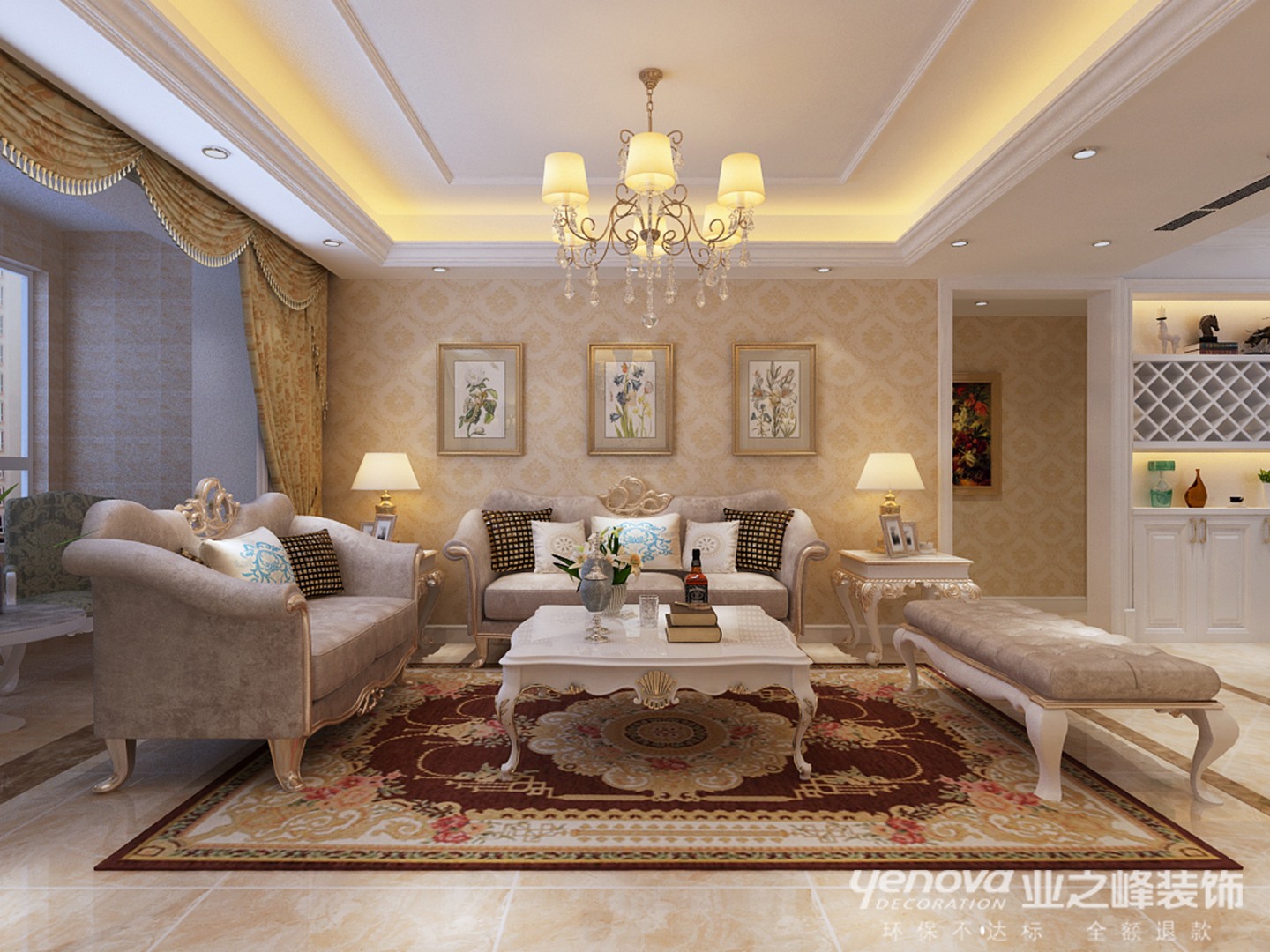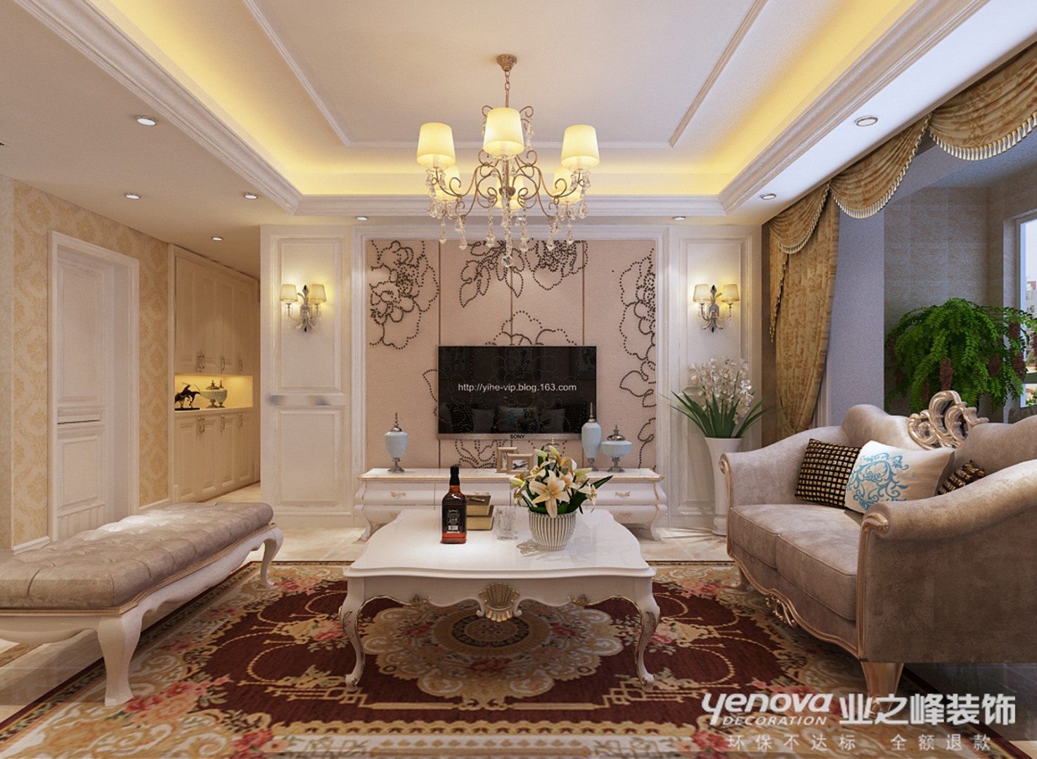 设计说明:本案采用欧式为空间的主导风格,欧式风格线角变化丰富,家具及灯饰都略显欧式特色并有一定的文化氛围。现代欧式的居室有的不只是豪华大气,更多的是惬意和浪漫。通过完美的曲线,精益求精的细节处理,带给家人不尽的舒服触感,实际上和谐是欧式风格的最高境界。同时,现代欧式装饰风格最适用于大面积房子,若空间太小,不但无法展现现代欧式装饰风格的气势,反而对生活在其间的人造成一种压迫感。当然,还要具有一定的美学素养,才能善用欧式风格,否则只会弄巧成拙。
