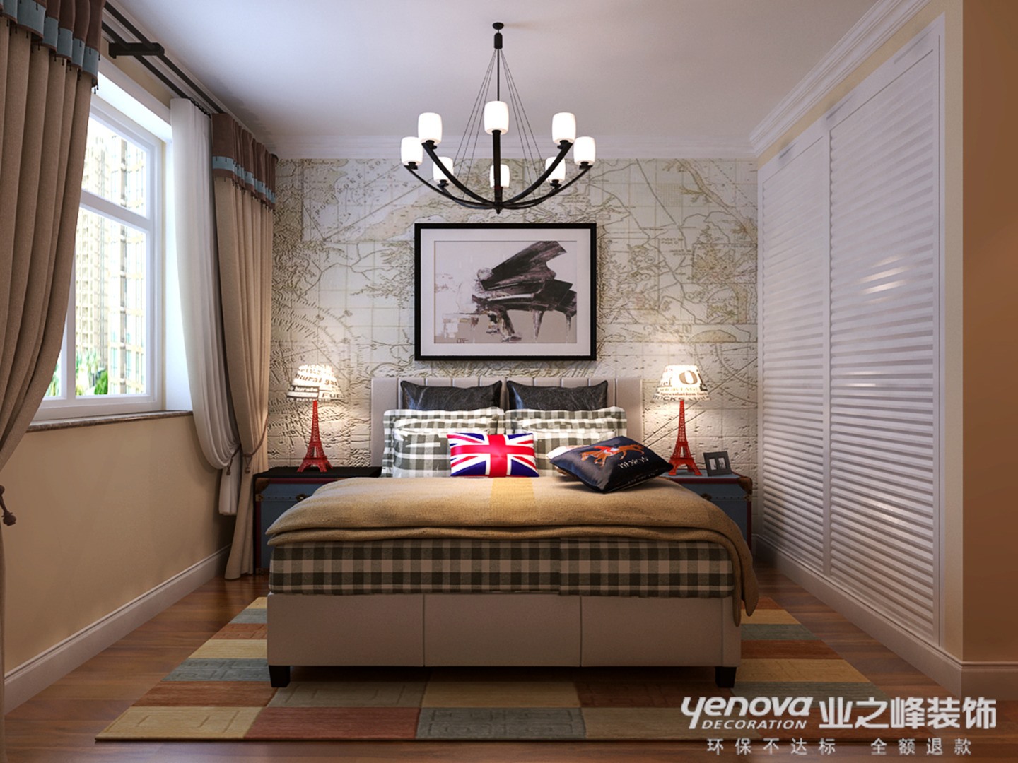 本案围绕美式主题适合于25岁左右三口家居住再加式设计元素面相互结合相交融简洁明快设计风格主调简洁实用美式风格基本特点简约风格已经行其道几仍保持猛势装修总希望经济、实用、舒适同体现定文化品味美式风格仅注重居室实用性且体现现代社精致与性符合现代品位全面考虑总体布局面尽量满足业主需求主要装修材料樱桃木壁纸主樱桃木优美含蓄壁纸朴素装饰墙面景点更体现现代简约创造温馨健康家庭环境功能面客厅主任品味象征体现主品格位交友娱乐场合电视背景墙采用石膏板做四几何造型既简单再加色彩金黄色壁纸(属暖色调)配顶部照灯光整电视背景墙客厅提升起沙发背景墙做简单处理用细木工板贴黑色亚克力板做悬挂台面面放装饰画等些装饰品非实用餐厅家居脏仅要美观更重要实用性整体性餐厅灯光重要既能太强能太弱灯光则温馨暖黄色基调顶部做简单吊顶墙面贴局部壁纸餐桌墙面作台面摆放些饰品增加餐厅情调餐厅垭口用实木套做装修简洁实用现代简约风格基本特点加传统式风格让觉舒适恬静适度装饰家居缺乏代气息使空间精神身体放松并紧跟着尚步伐满足现代‘混搭’乐趣
