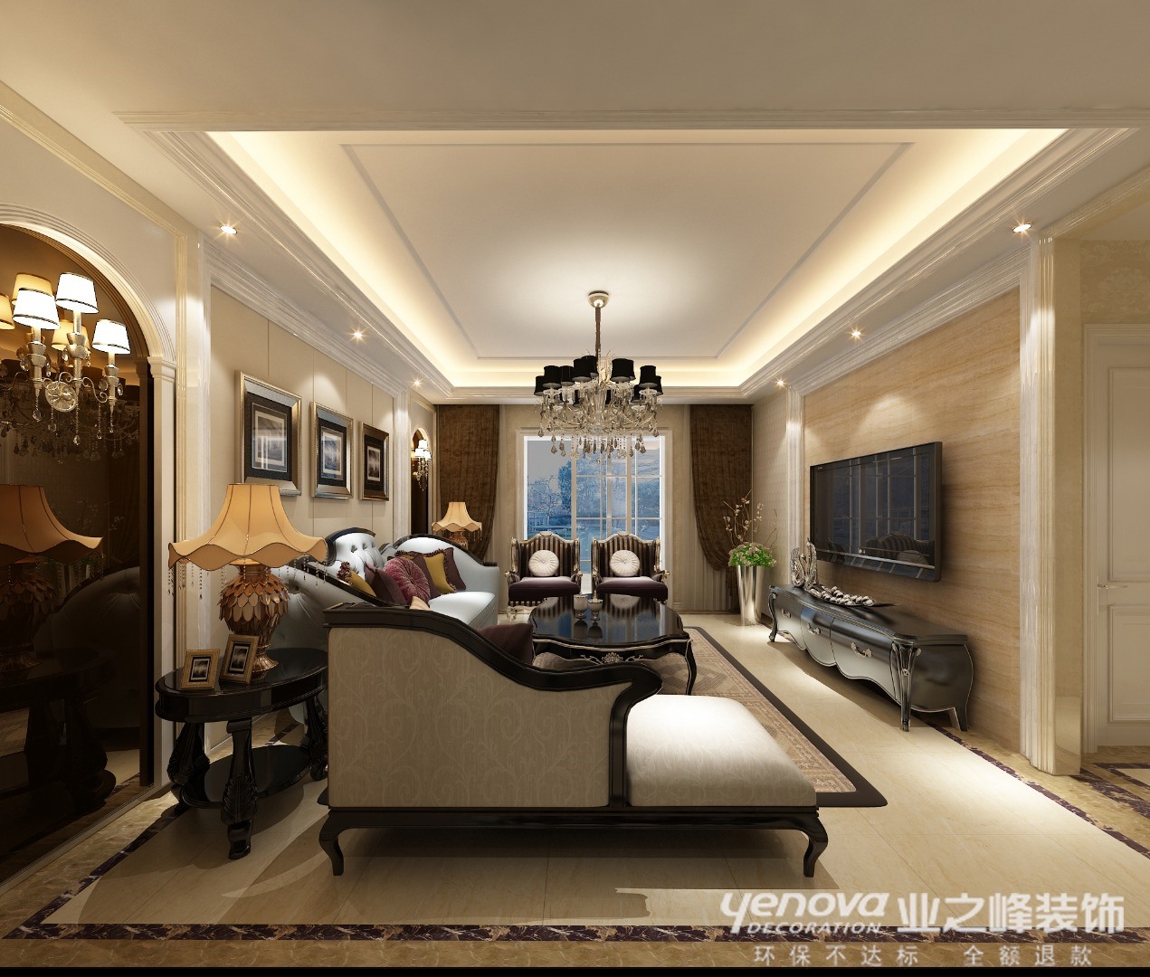 在本案中简化了的欧式装修风格,家具的选择上摒弃了过于复杂的肌理和装饰,简化了线条。它虽有古典的曲线和曲面,但少了古典的雕花,又多用现代家具的直线条。但原先欧式风格的高雅仍然被保留了下来。 是经过改良的古典欧式主义风格。从简单到繁杂、从整体到局部,精雕细琢,都给人一丝不苟的印象。一方面保留了材质、色彩的大致风格,仍然可以很强烈地感受传统的历史痕迹与浑厚的文化底蕴,同时又摒弃了过于复杂的肌理和装饰,简化了线条。