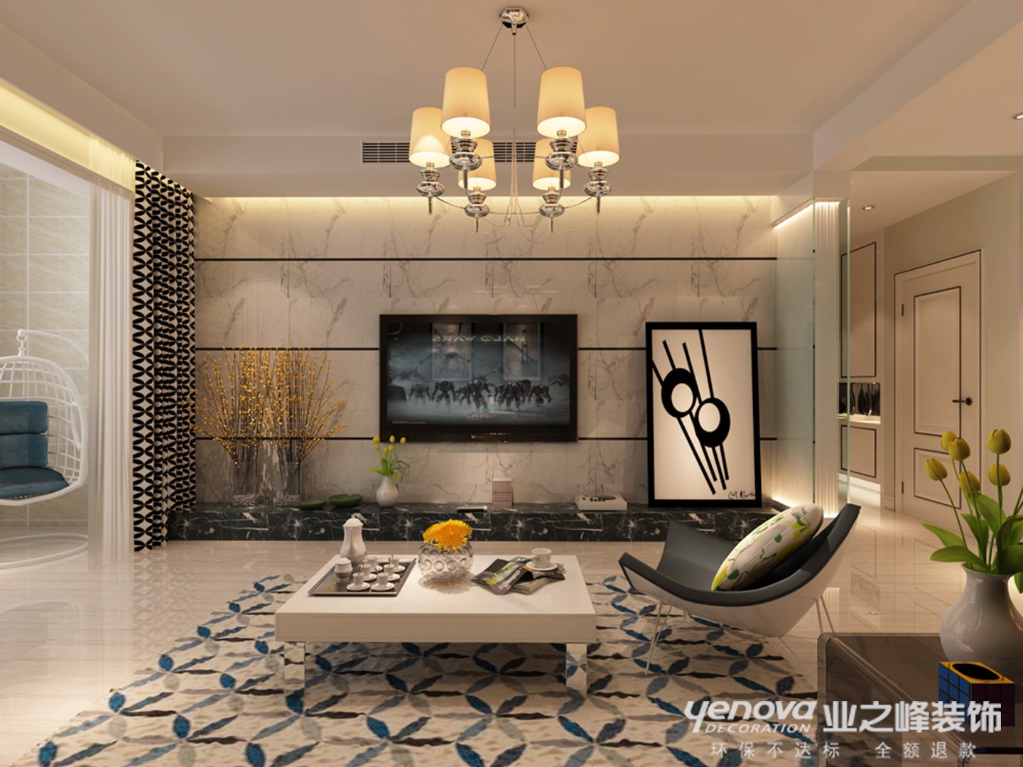 本方案采用现代风格,业主喜欢简约的现代风格,本案以精美的装饰、温馨的色彩、大气的造型达到温馨大方的装饰效果。客厅顶部用直线反光灯池吊顶,显得低调而精致,并用简单线性吊灯营造气氛。墙面造型运用石材、壁纸和实木相结合,材质多样化,造型丰富精美。墙面用高档壁纸,或优质乳胶漆,以烘托大气效果。主卧运用软包,造型精致,色彩干净,温馨舒适,鲜花,绿植,任何一个角落,都能体会到业主温馨舒适的生活和娴静的心情。
