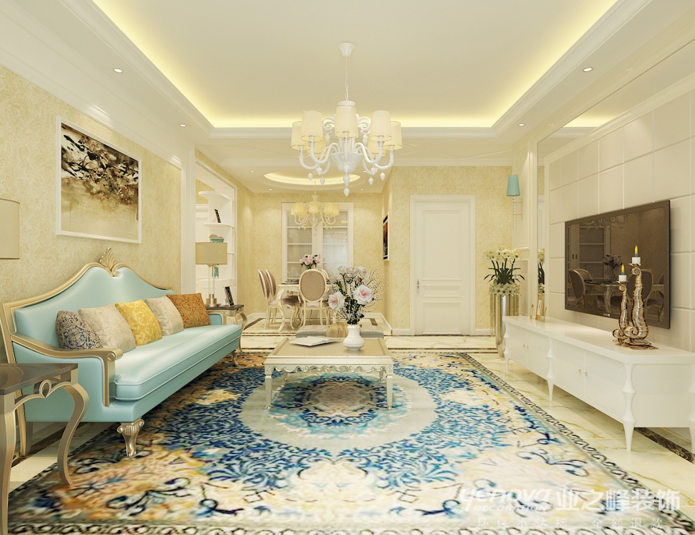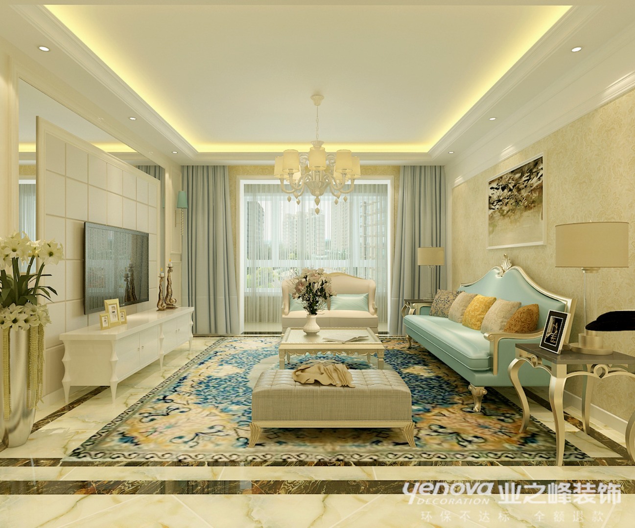 此方案设计风格是“欧式风格”. 很好的营造出“典雅、自然、高贵”的气质。“浪漫着奢华”是本案想打造的视觉空间。电视墙采用线条和壁纸材质,渲染色彩的同时强调了造型的笔挺。客厅的弧形吊顶和角花的运用,不仅体现了男性的刚强也表现出女性的柔美 。无论从色彩还是造型都很好的诠释了设计主题。