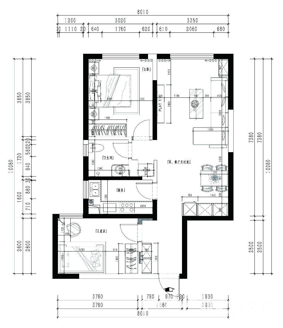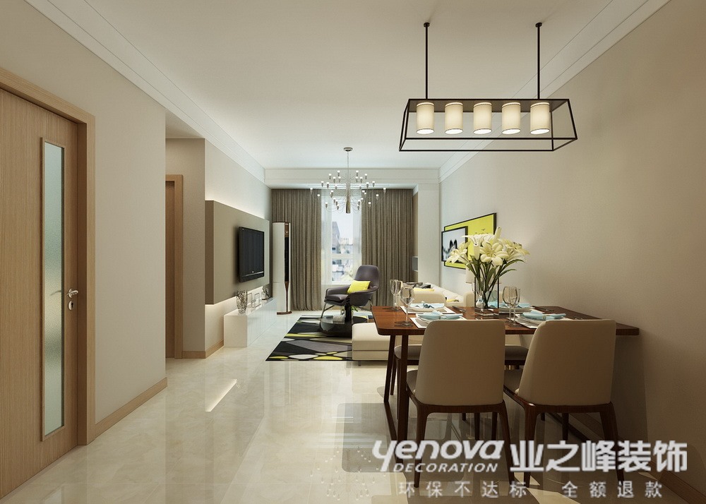 此方案以简洁的表现形式来满足客户对空间环境那种感性的、本能的需求。本案以白色和褐色为基调,将美观性与功能性相结合,重点营造简洁、时尚、典雅的住宅空间。此方案客、餐厅没有做刻意的空间分割,客、餐厅墙面和顶面都采用洁净的暖褐色,整个空间明亮舒适,经久耐看。地面、顶面、墙面没有复杂的造型,重点在于材料的选择和运用,乳胶漆墙面配合典雅的装饰画为空间增添了很多优雅色彩,地面采用釉面砖体现空间的整洁性;让整体视觉更加自然且富有韵律感。