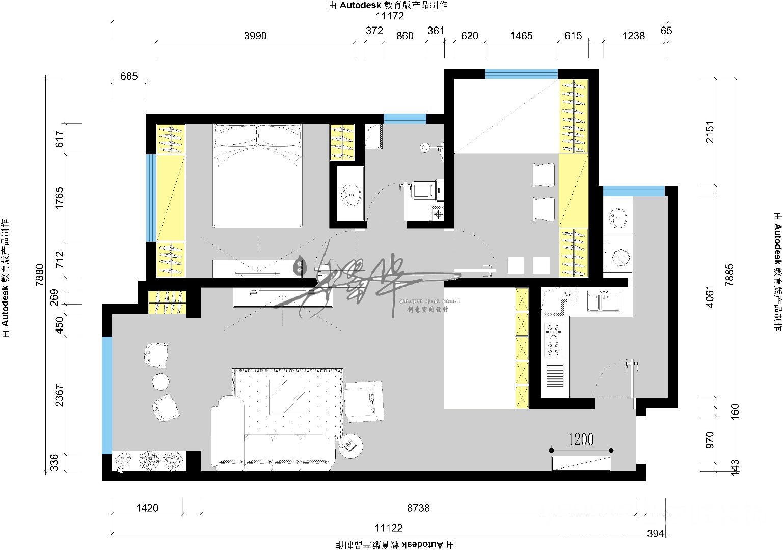 小区:国宾中央区 面积:86㎡ 户型:二居 风格:地中海风格