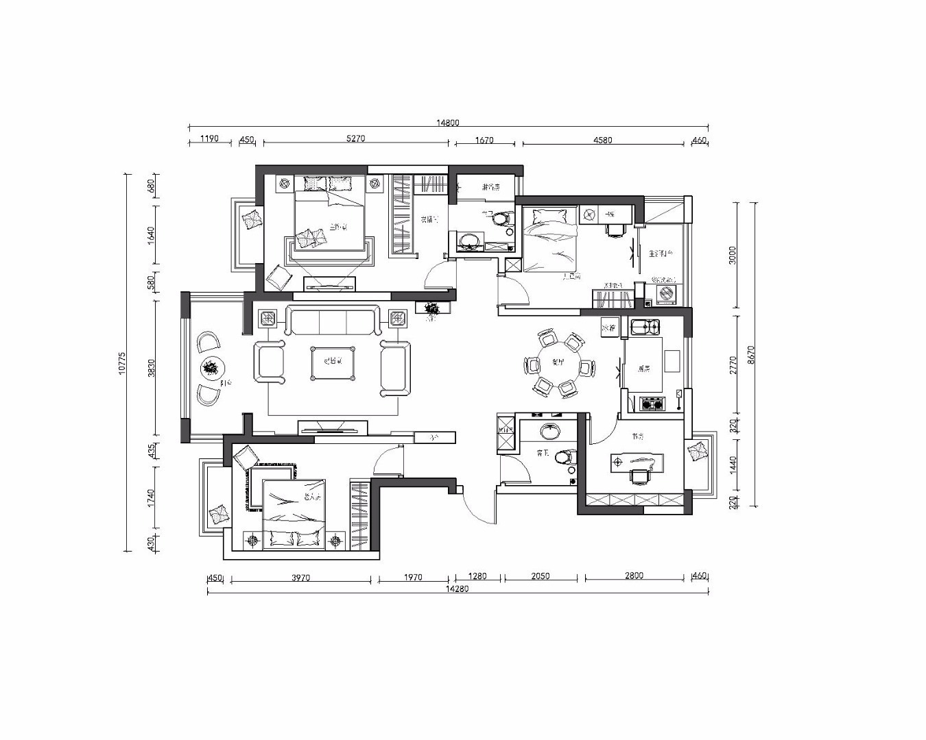 小区:九鼎城 面积:130㎡ 户型:三居 风格:简欧风格