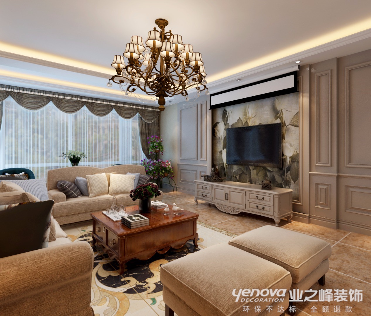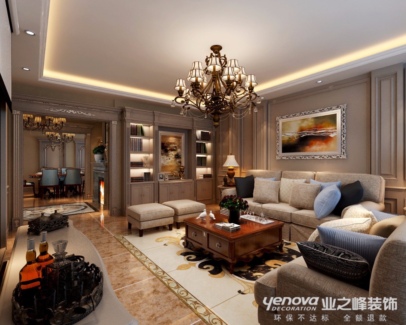 120㎡三居美式风格招商贝肯山