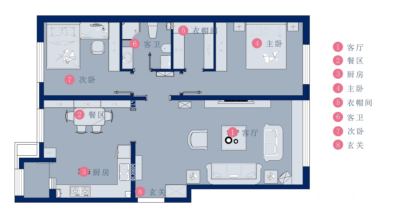 本方案为休闲美式装修风格,随意的不羁生活方式,没有太多造作的修饰与约束,不经意中也成就了另外一种休闲式的浪漫,它有着欧罗巴的奢侈与贵气,但又剔除了许多羁绊,又能找寻文化根基的新的怀旧、贵气加大气而又不失自在与随意的风格,正好迎合了这部分购买者的需求,即:有文化感、有贵气感,还不能缺乏自在感与情调感。
