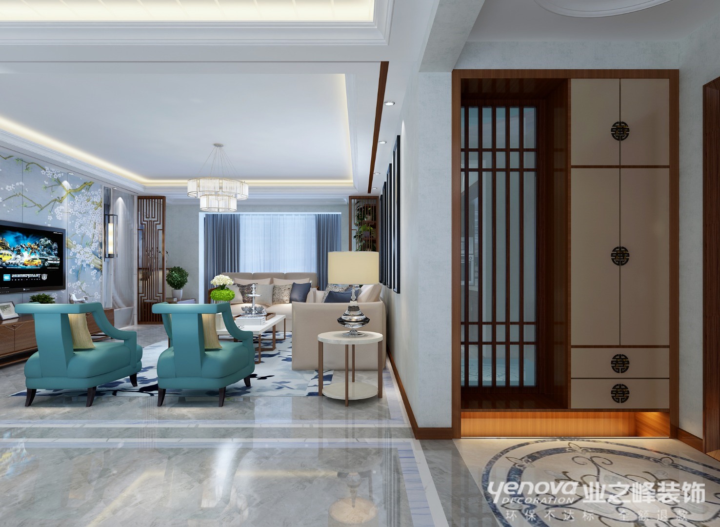 208㎡四居新中式风格江胜天鹅湖