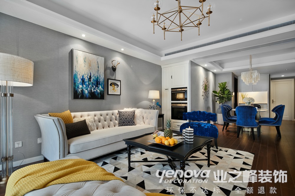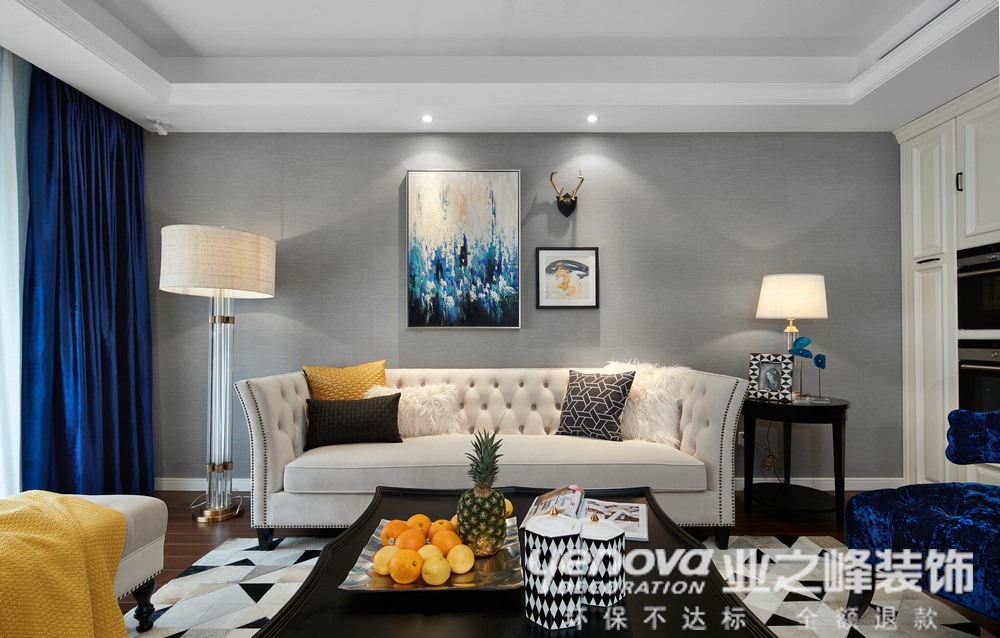 本案设计为简约风格,简约不等于简单,每一个细小的局部和装饰,都经过深思熟虑,反复推敲,达到简约精致的效果。比如餐厅背景的设计,一个小的点缀,装饰挂画,起到画龙点睛的作用等等。设计中运用不同的材质、造型把整个空间有机的融为一体,简而不繁。业主喜欢干净简单,所以床头用了一点淡蓝色的壁纸面,四面还是灰白色的漆相接,房间整体配以现代的家具、蓝色的窗帘,木色的地板,与简单的灯具相呼应,给人以大气、活跃的感觉。拐角处放置一组单人沙发,闲暇时可以喝喝茶看看书,很是惬意。