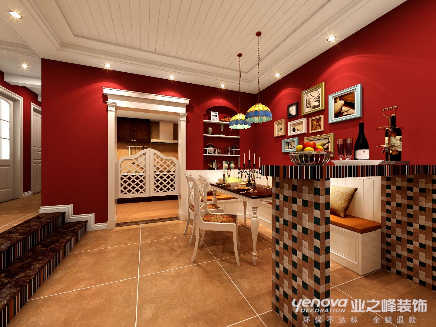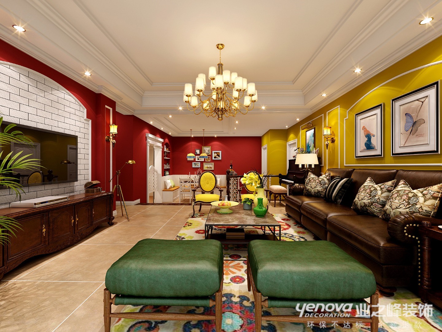 作为殖民地风格的代表,美式崇尚自由舒适,搭配也更加随意。本案业主对审美有着自己独到的追求,喜欢鲜明跳跃的色彩,舒适温馨的环境。美式的多元化融合正好迎合业主各方面的需求。大胆运用高纯度的红色和橘黄色作为基调,两种色彩形成鲜明视觉对比效果,并与一些色彩丰富的装饰品相得益彰,就算地中海常用的彩色贝壳灯也能与空间和谐统一。整个营造出如童话插图一般绚丽美好的空间氛围。