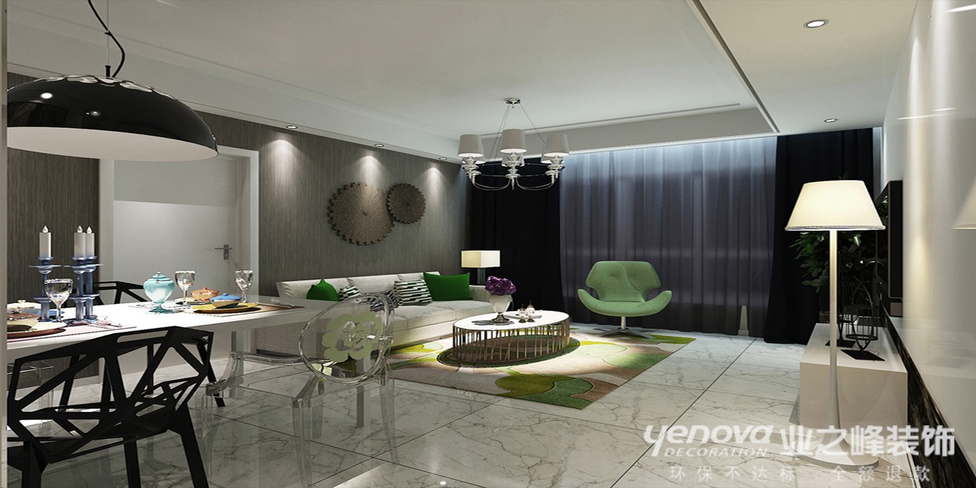 以素色为主色调,以蕴含春意的装饰品点缀,让空间更灵动,更随性 。跳跃的黄色和饱含生机的草绿色,让房间充满童话色彩。这淡淡的清新张扬鲜活的生命力,让空间平添几分活泼。仿佛定格在春天到来的那一瞬间。每一件配饰都可以为家呈现出别致的风景,复古的装饰画和几何餐椅在明亮的空间中,增添一抹严肃,而另外两把带有绿玫瑰图案的透明餐椅使整个空间充满了浪漫。整个搭配各有呼应不显突兀,一切看起来是那么和谐那么返璞归真。紫色的鲜花在花瓶里安静等待,等待春天?等待未来?