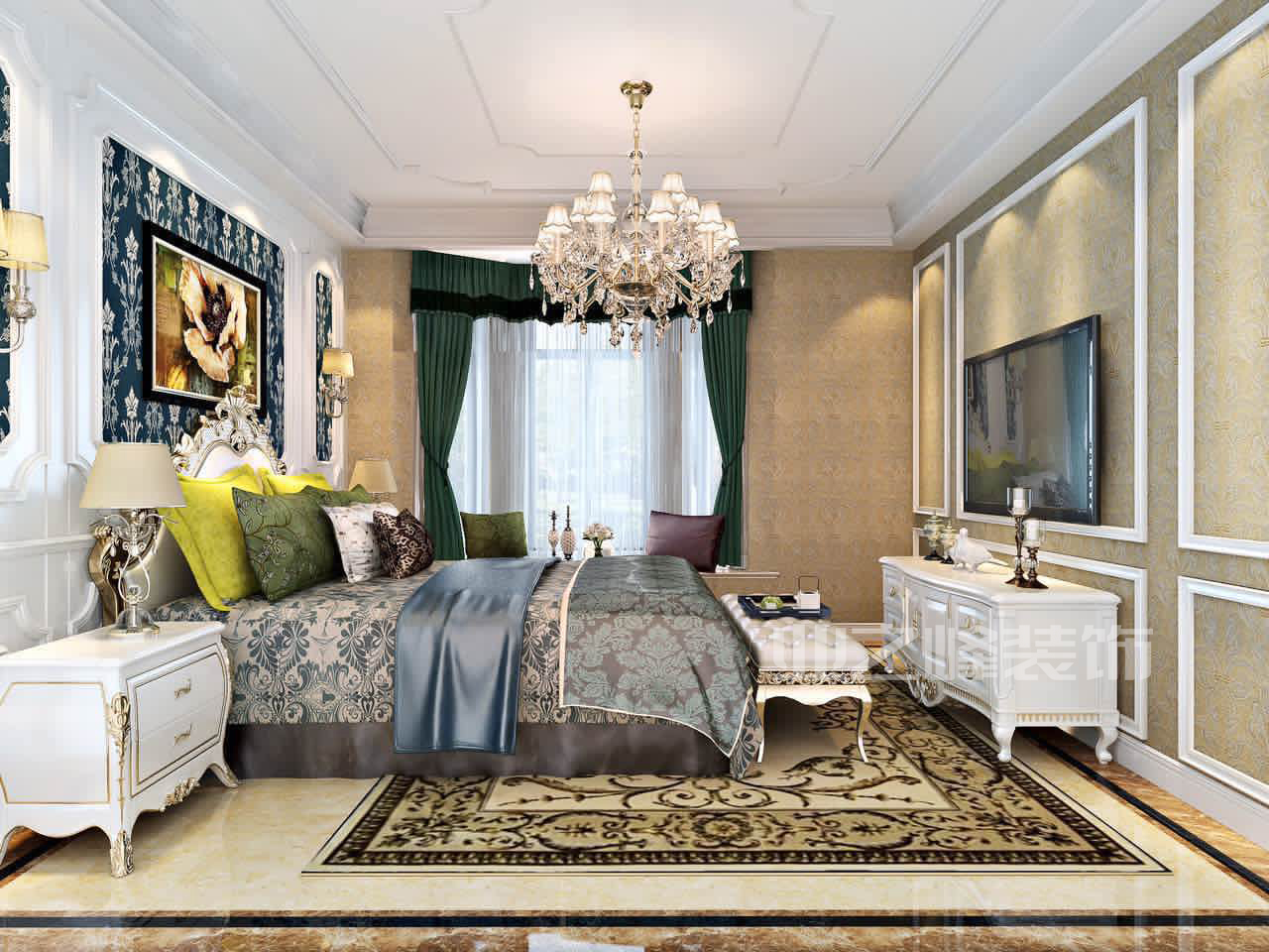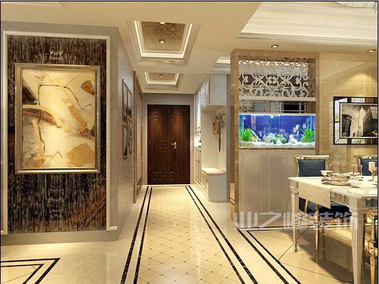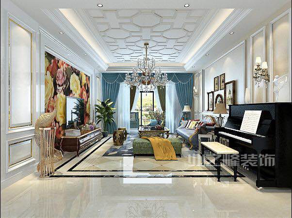 本案例为四室两厅两卫住宅 ,设计师以新古典的设计风格为主调,全面考虑,