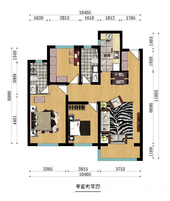 本设计方案在家居色彩的选择搭配上,更倾向于浅色比如白色、米色、浅木色。通常以白色为主色调,使用其他鲜艳的纯色为点缀;亦或以黑白两色为主色调,不加入其他颜色,在空间上给人干净明亮、沉稳尔内敛的感觉。在北欧风格中,原木质感占有很重要的地位。北欧风格的居室中使用的地板通常选择原木色,最大限度地保留了木材的原始色彩和质感,有很独特的装饰效果。除了原木色地板以外,北欧室内装饰风格也可以用到装饰性的“假梁”,原木质感的假梁虽然是纯装饰性的,但依旧无法抹去它在北欧风格中的重要性。