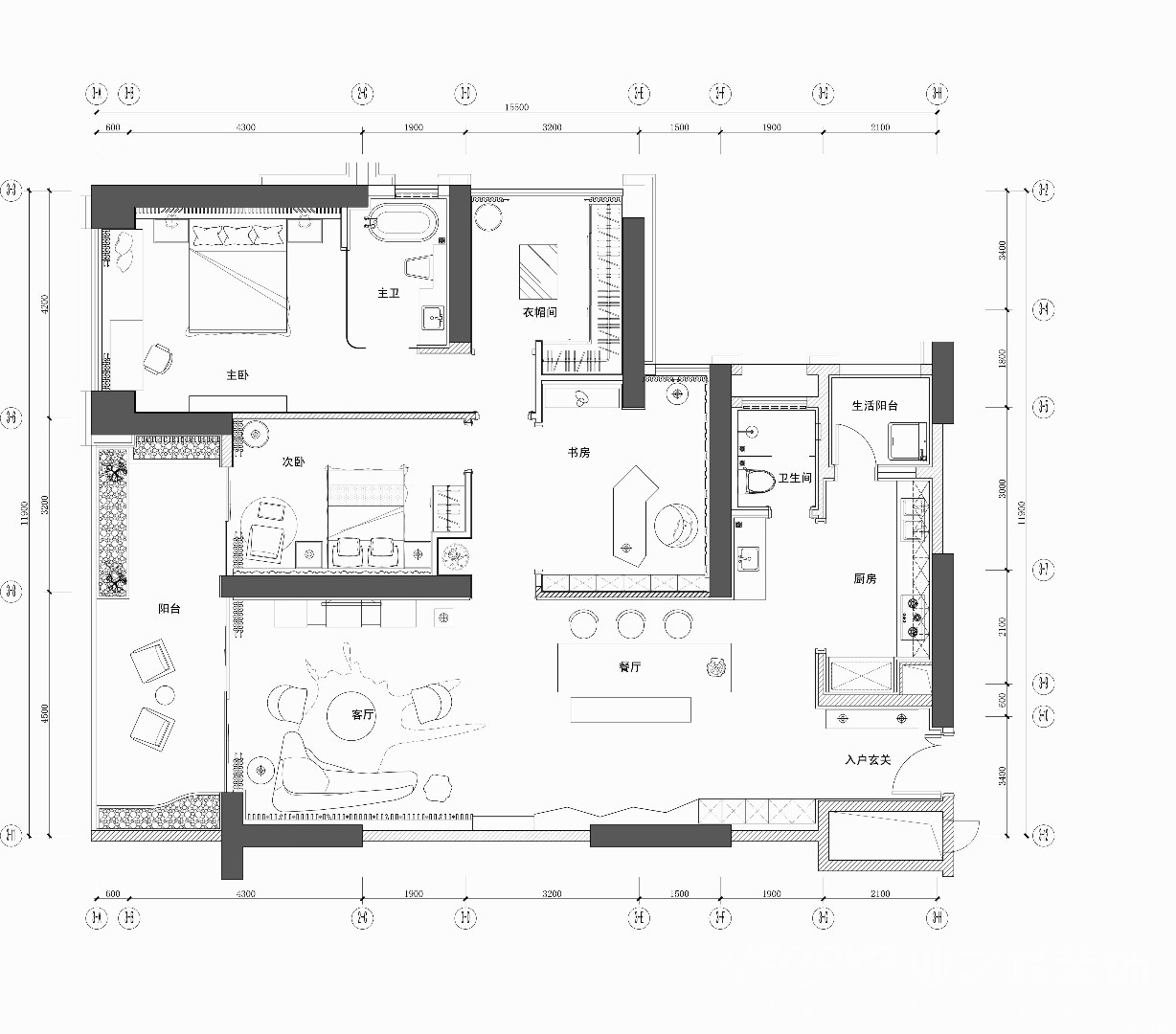 小区:梧桐苑 面积:155㎡ 户型:四居 风格:现代简约风格