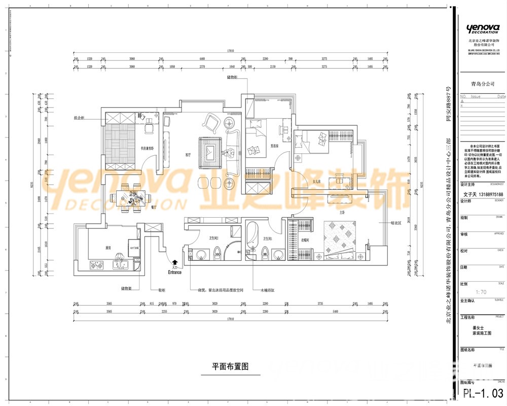 1、过道走向两条合并成一条,利用半截过道改成储藏柜及卧室的衣柜,空间利用率更加充分,也使走道方正起来。