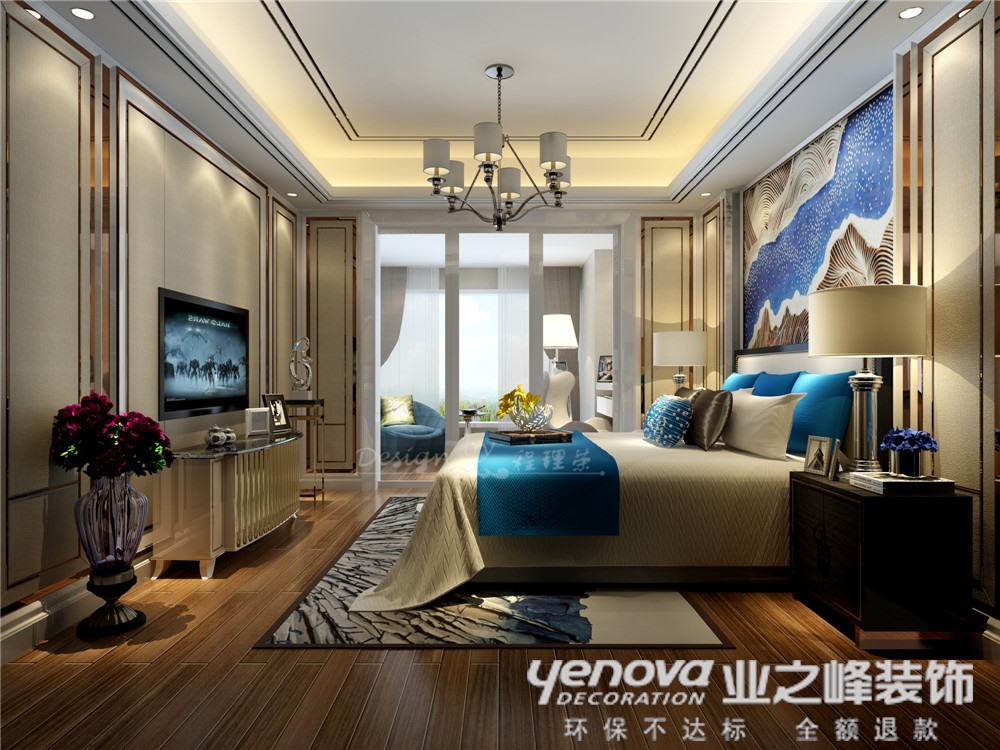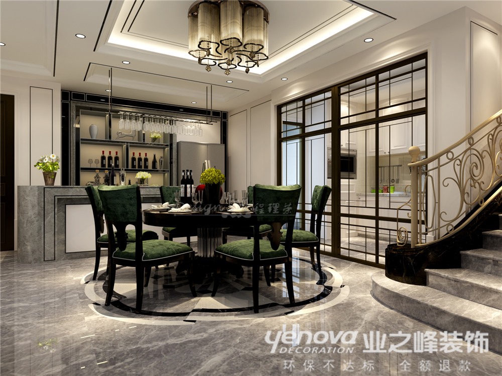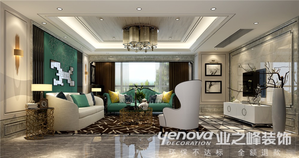 本案整体风格为港式与现代的混搭,业主是一对年轻夫妻育有一个四岁的小孩,并且业主要求自然简洁地展示出港式风格。因此在本案中采用丰富的色彩(如果绿色、深蓝色等)、大胆的造型、艺术石材以及金属线条勾勒出该风格的突出点;所有的灯具提供柔和、偏暖的灯光,让整体素雅的居室不会有太多的冰冷感觉。整体家居饰品烘托居室的格调,平衡居室内色彩、图案、明暗、大小等关系。