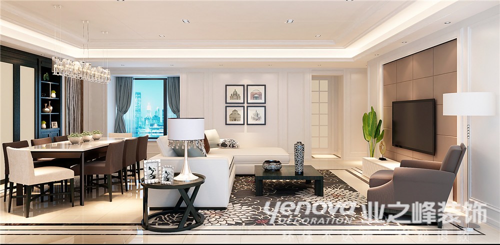 简约精致、自由休闲的生活方式都是生活在现代都市人追求的理想。经过一天快节奏的工作,疲倦的心灵渴望归于平静舒缓的栖地,这正是本案的设计主诉:用新古典的混搭手法来还原生活的美,奢华大气而不张扬同时又营造时尚的浪漫。纯净的色调、巧妙的搭配、通透的空间、精致的绣花都以一种恬淡的性情诉说着都市里的品质生活。