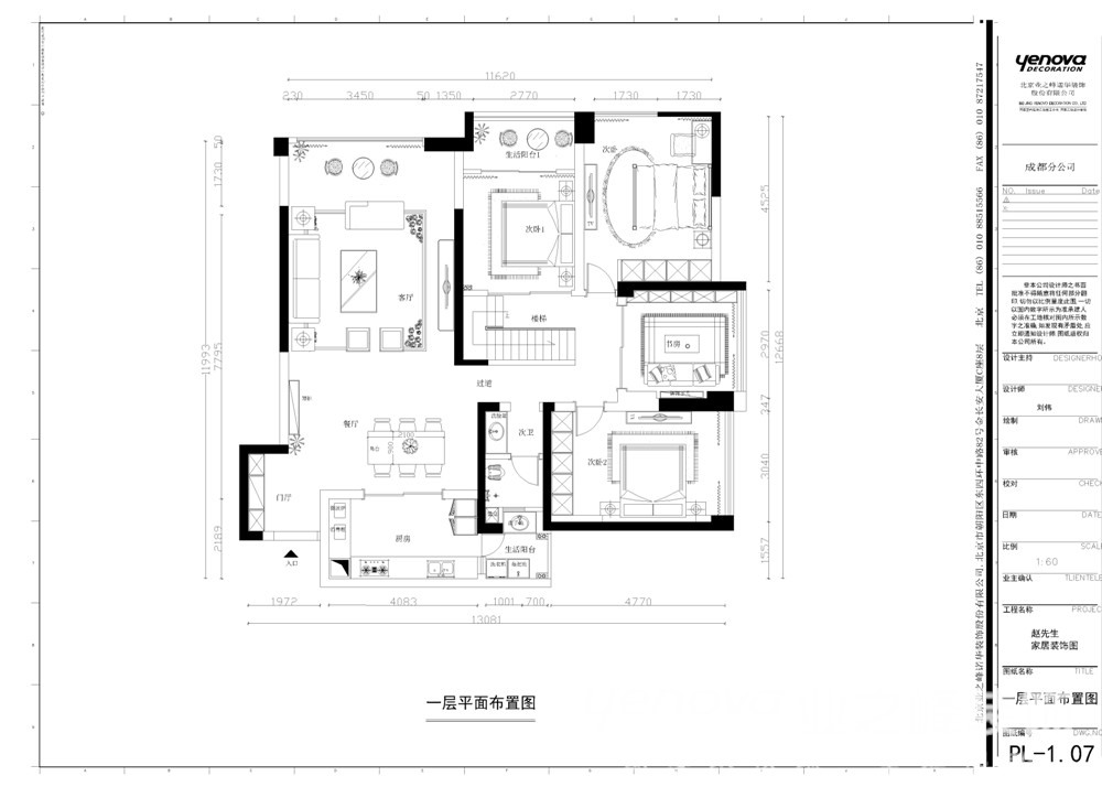 此设计方案风格倾向定位为后现代风格,居室中所出现的电器皆为紧跟时代潮流的产品,如等离子电视、环绕立体音响等。本案的设计重点是会客空间与门厅、餐厅以及过道空间互通与交流,从设计手法上采用了从墙面上的线与面的衔接呼应,以及顶面的空间的虚拟划分,达到各功能空间融会贯通的目的。简洁、后现代的极少主义在本案中得到了淋漓尽致的体现。