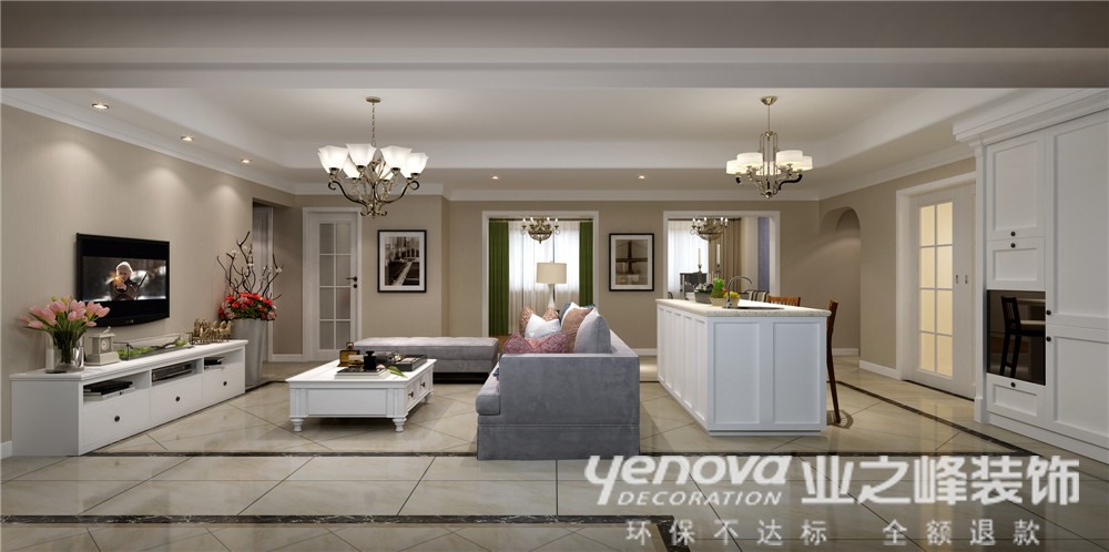 设计说明:不加过多修饰与约束的美式风格,散发出迷人的休闲式浪漫,既有着欧式风格的华丽与贵气,又剔除了更多羁绊,同时又能寻找文化根基的新的怀旧,贵气而不失自在与随意。简美更是以功能性为优先考虑,适合追求舒服,兼顾优雅,既注重起居品质,又不过分张扬的人群。