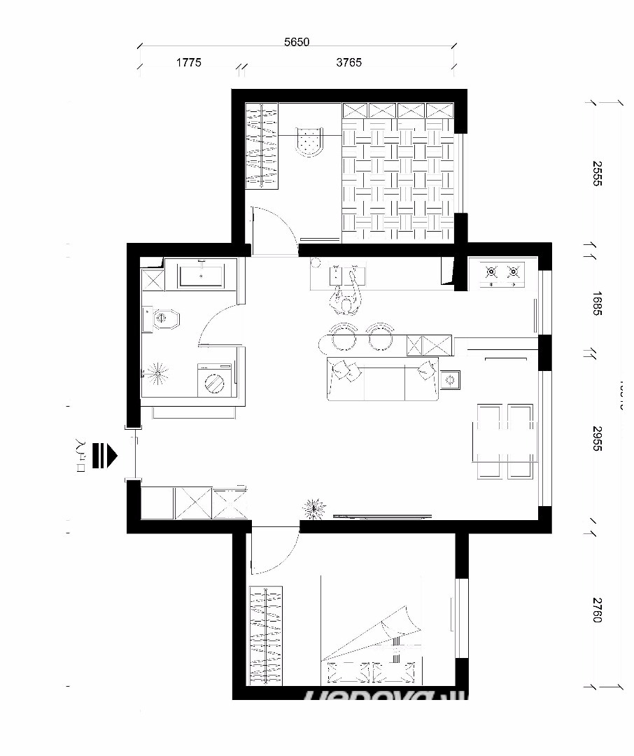 小区:君贵东方瑞景 面积:52㎡ 户型:二居 风格:现代简约风格