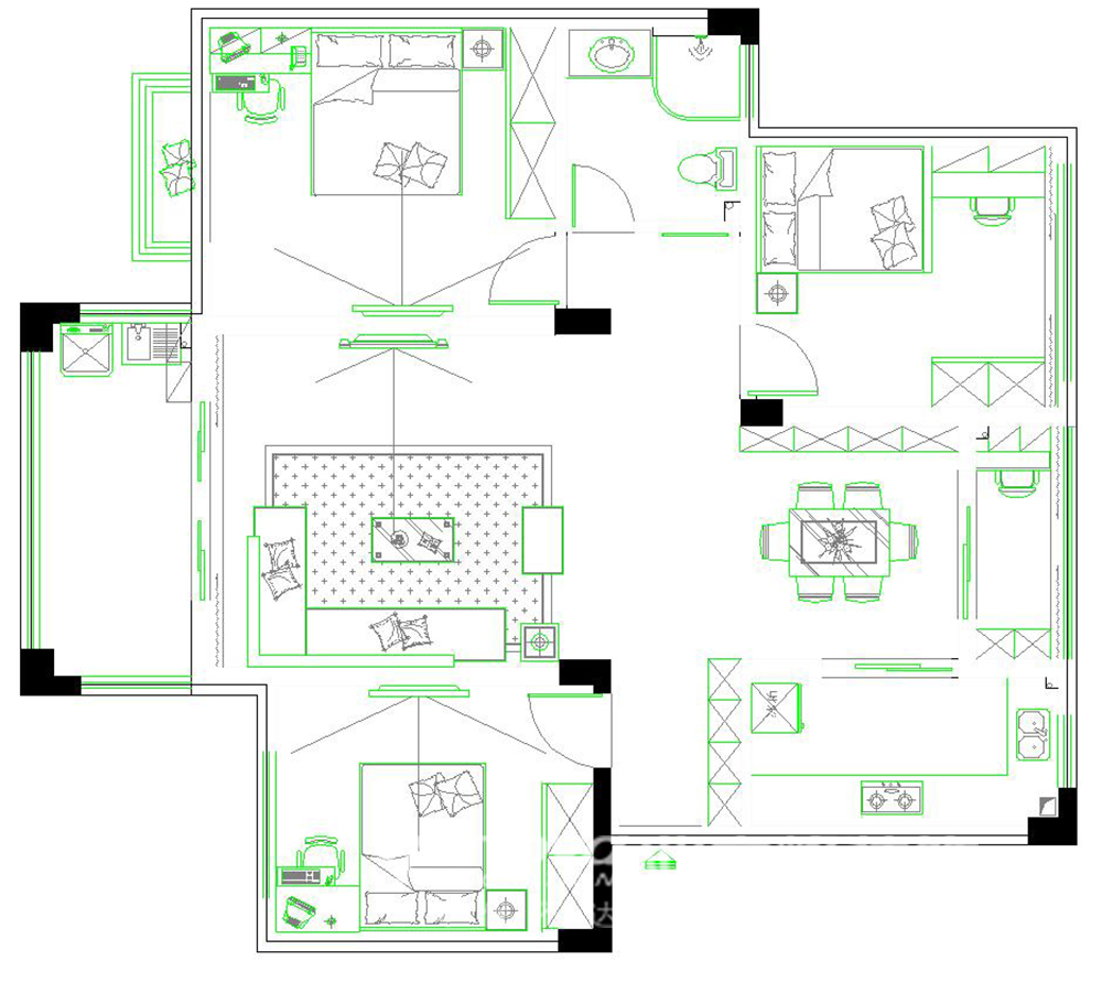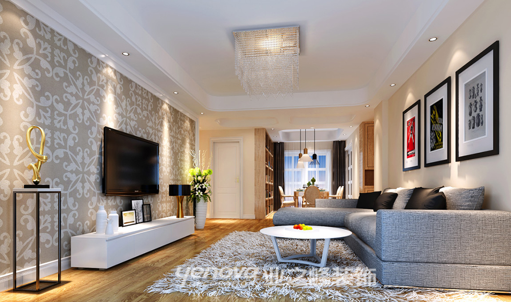 110㎡三居现代简约风格恒茂红谷新城