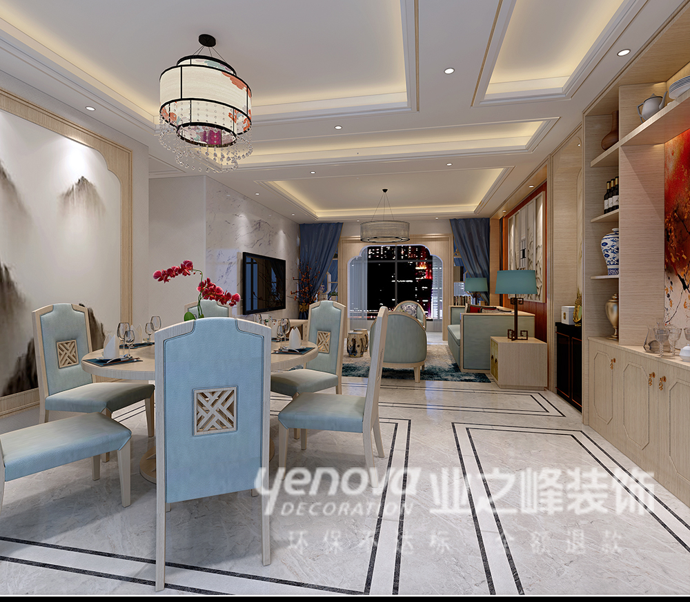 山水意境,这位中年业主有为喜爱。装饰风格多种多样,业主选择新中式,可以看出是想在新居中寻找一种安静的简单,山水的意境。