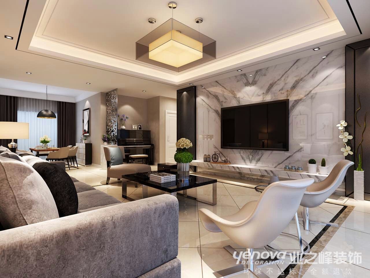 本案设计大多采用黑、灰、白等内敛色调。以金属线条样式和组合方式简单大方感营造整体氛围,但是为了避免把家装的感觉做的过于酒店话所以在选择壁纸和石材搭配时特意把颜色选简洁而不失时尚。