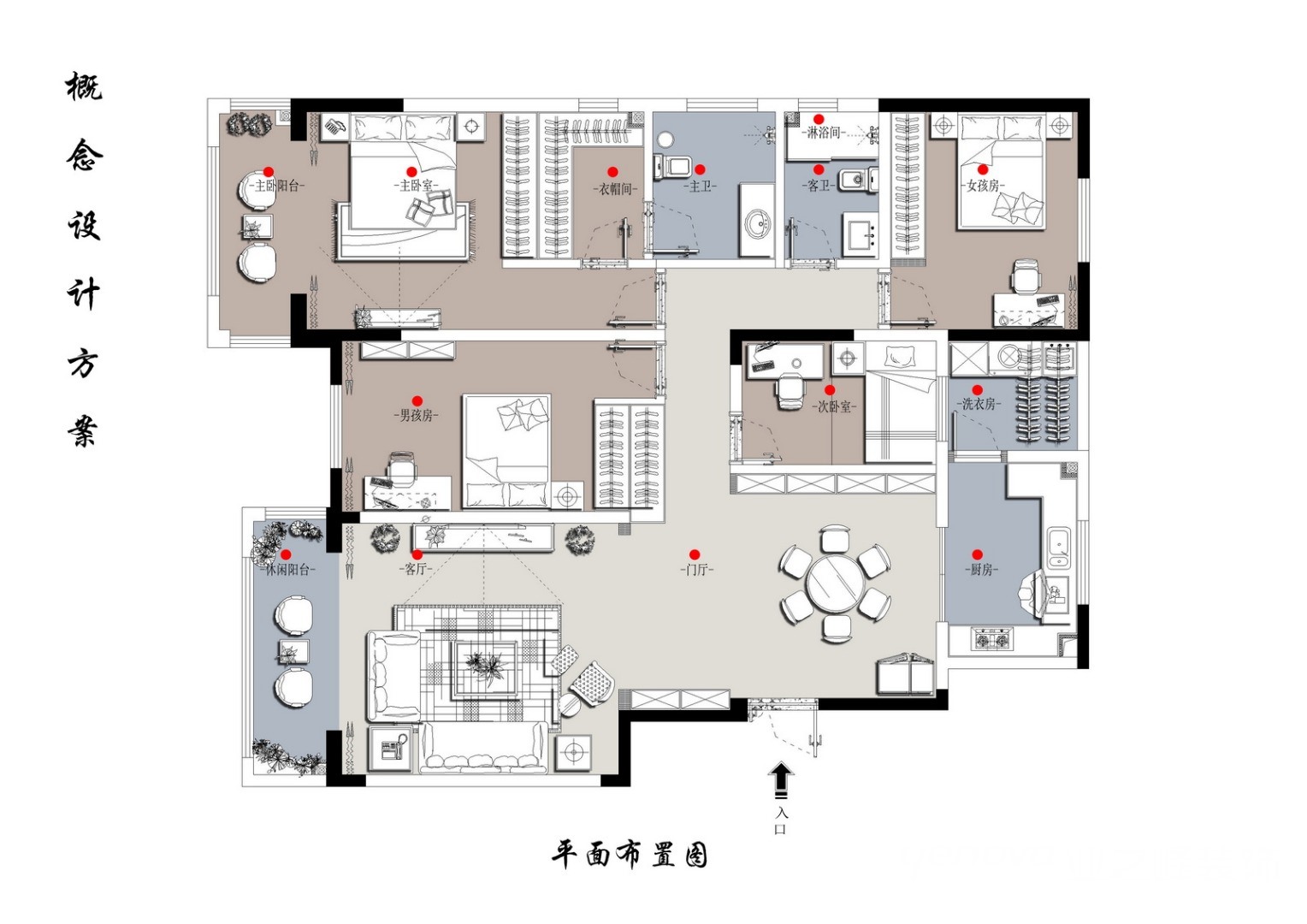 小区:龙湖源著 面积:165㎡ 户型:平层 风格:美式风格