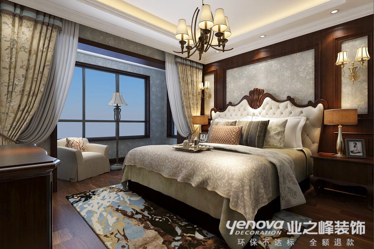 卧室布置较为温馨,作为主人的私密空间,主要以功能性和实用舒适为考虑的重点,多用温馨柔软的成套布艺来装点,同时在软装和用色上非常统一。
