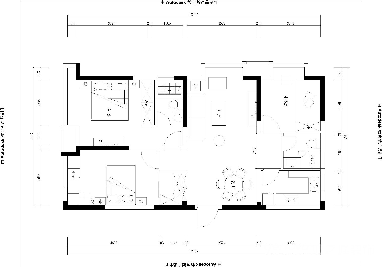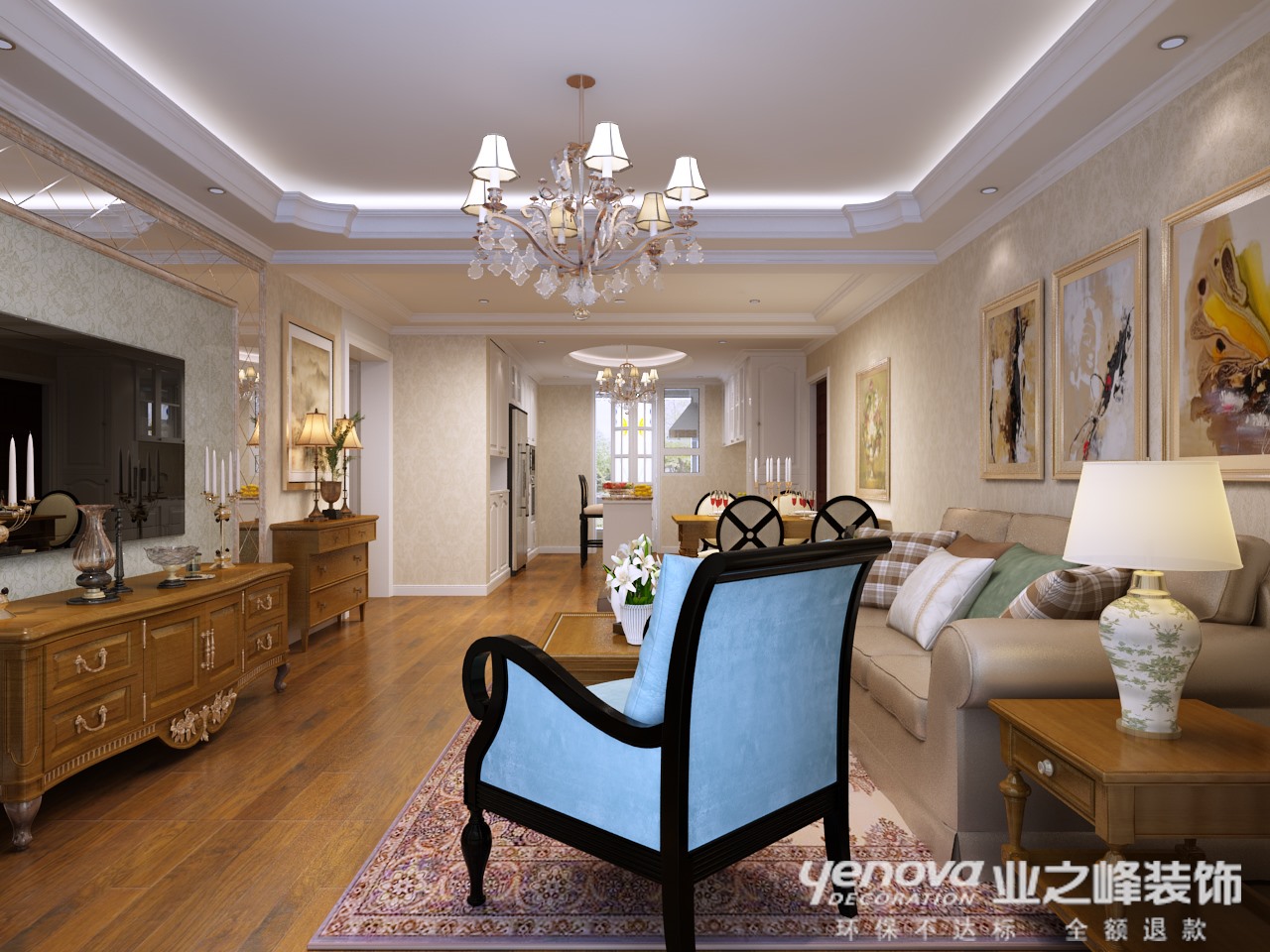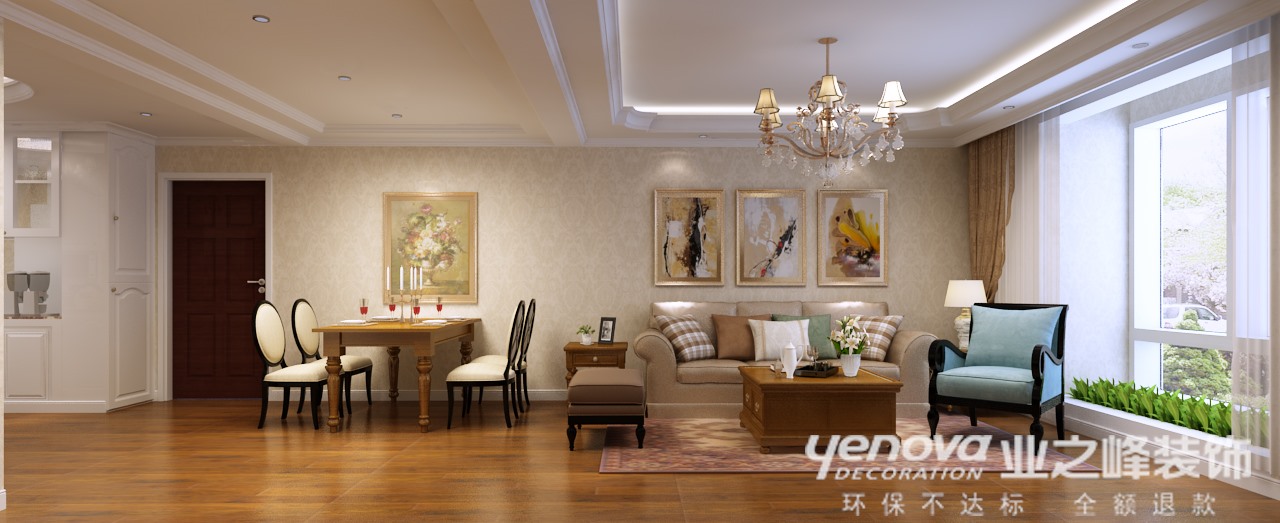 小区:龙湖春江紫宸 面积:109㎡ 户型:三居 风格:简欧风格