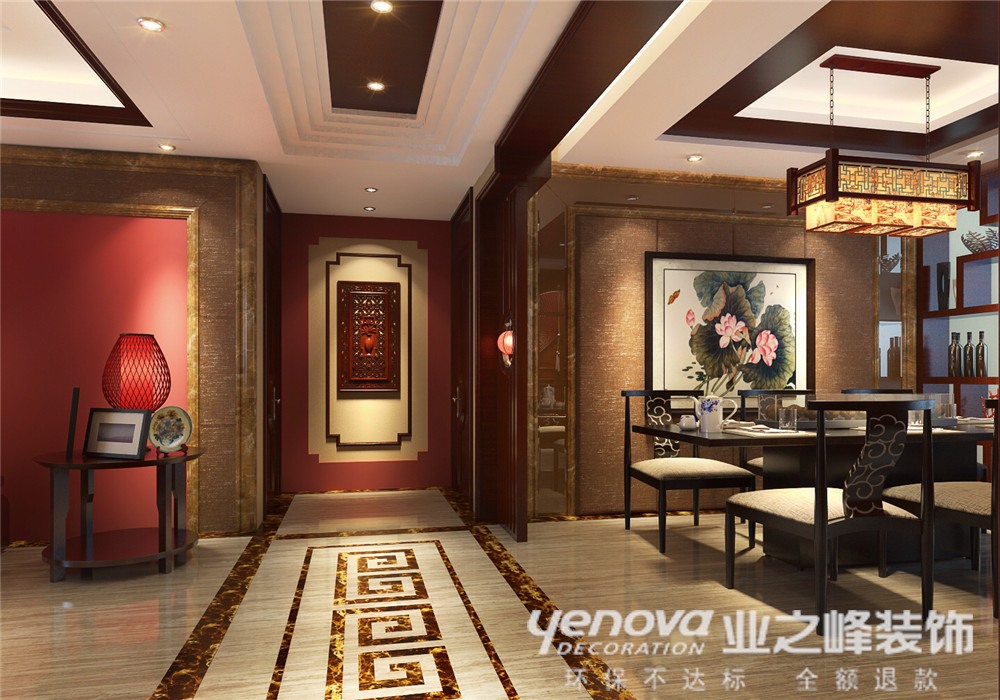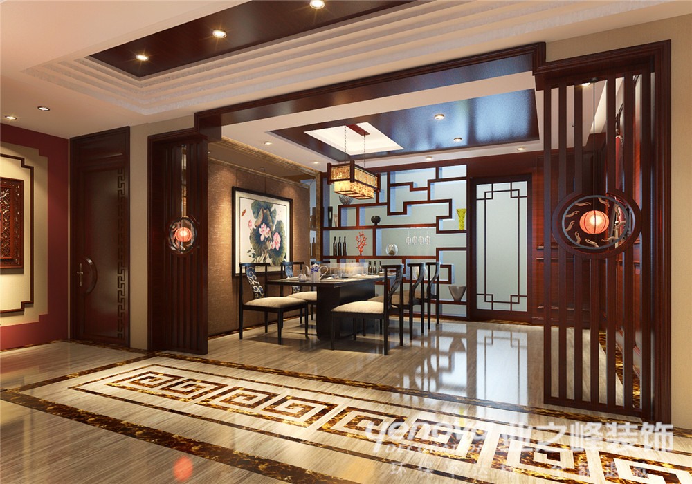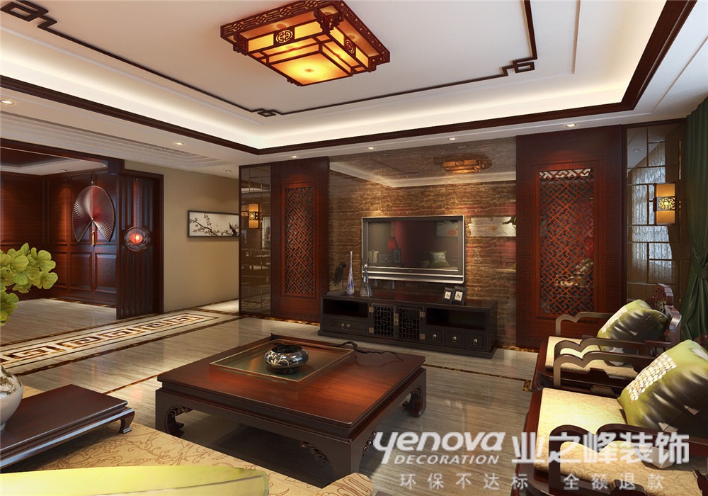现代中式风格更多地利用了后现代手法,墙上挂一幅中国山水画等传统的书房里自然少不了书柜、书案以及文房四宝。 中式风格的客厅具有内蕴的风格,为了舒服,中式的环境中也常常用到沙发,但颜色仍然体现着中式的古朴,中式风格这种表现使整个空间,传统中透着现代,现代中揉着古典。这样就以一种东方人的“留白”美学观念控制的节奏,显出大家风范,其墙壁上的字画无论数量还是内容都不在多,而在于它所营造的意境。可以说无论西风如何劲吹,舒缓的意境始终是东方人特有的情怀,因此书法常常是成就这种诗意的最好手段。这样躺在舒服的沙发上,任千年的故事顺指间流淌。