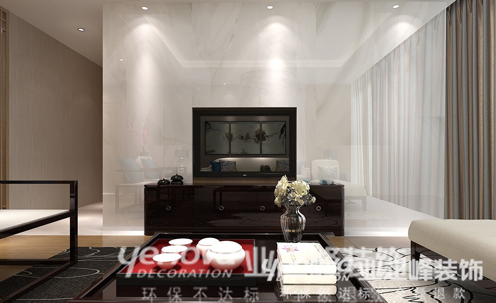 方案是围绕现代中式为主题,以简洁明快的设计风格为主调。客厅是主人品味的象征,体现了主人品格、地位,也是交友娱乐的场合。简洁和舒适是现代中式风格的基本特点,让人感觉舒适和恬静,适度的装饰是家居不缺乏时代气息,使人在空间中得到精神和身体的放松,并紧跟着时尚的步伐,也满足现代人“混搭”的乐趣。