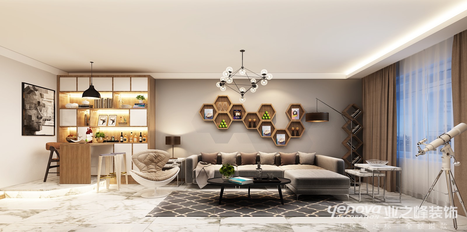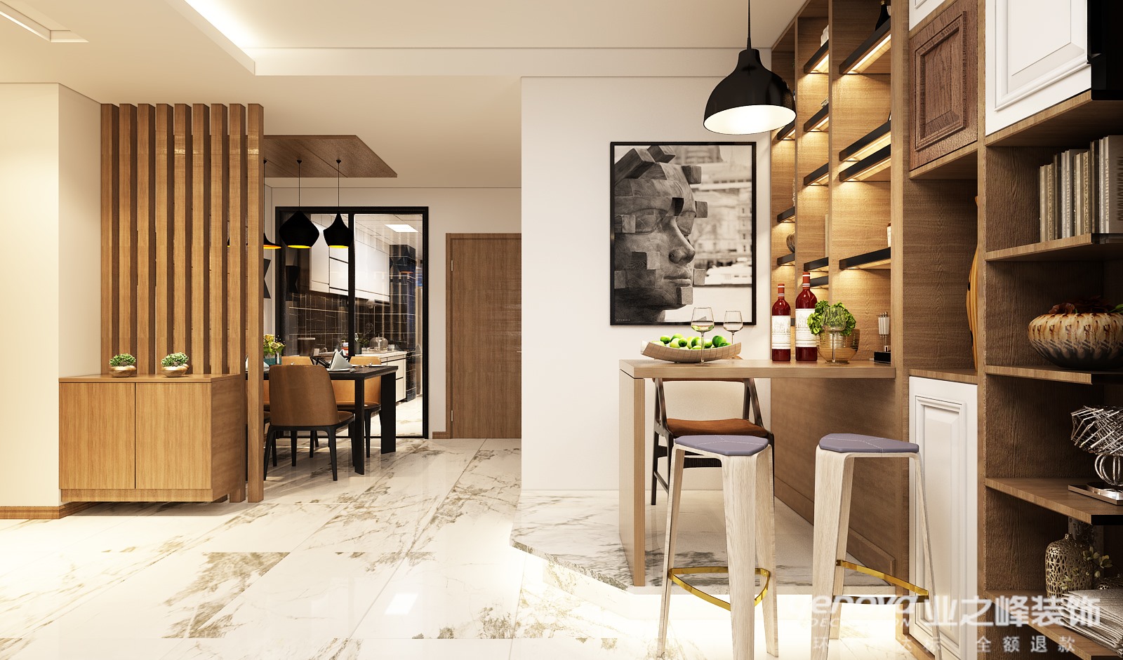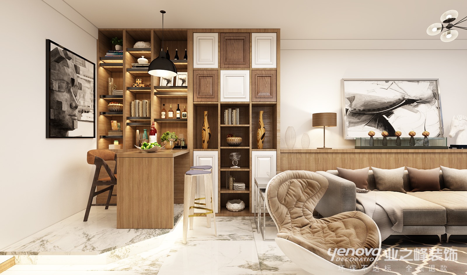 本案设计空间感强,从整体出发到局部到细节。所以 空间功能得到了最大化的利用。其他空间也都得到了更加合理的利用。主要元素运用与 包豪斯 原木色 黑白灰。