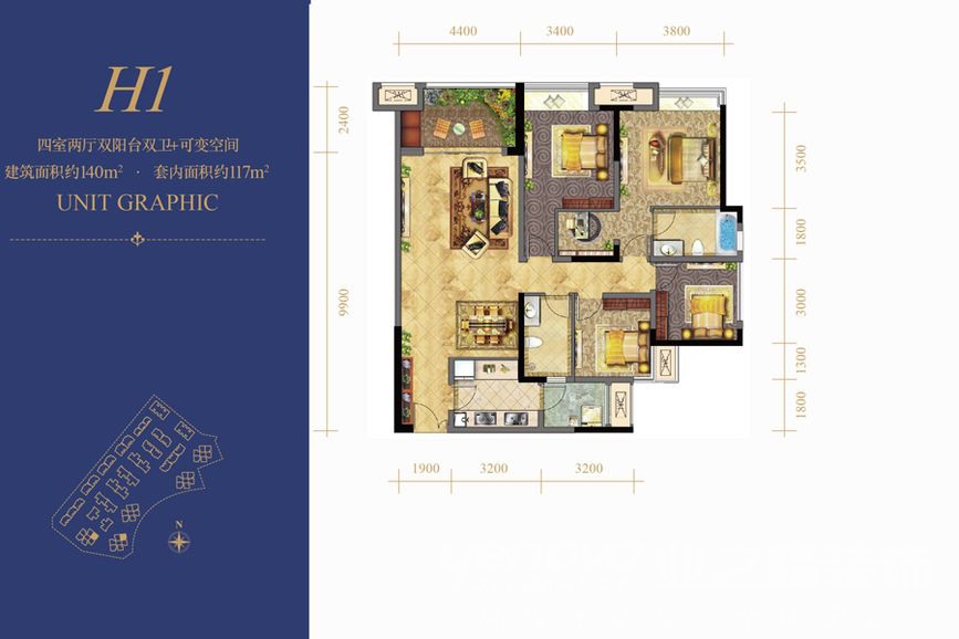小区:约克郡 面积:140㎡ 户型:三居 风格:现代简约风格