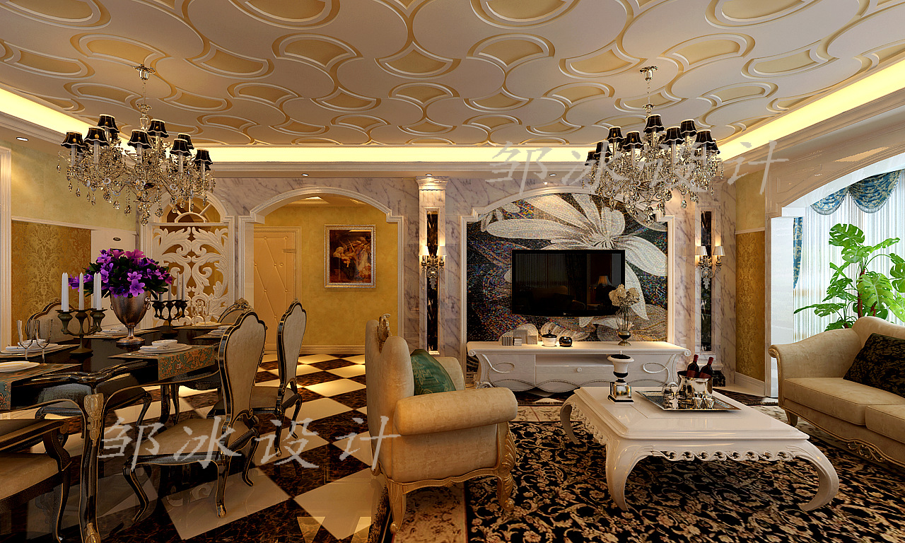 小区:辰能溪树庭院 面积:150㎡ 户型:三居 风格:新古典风格